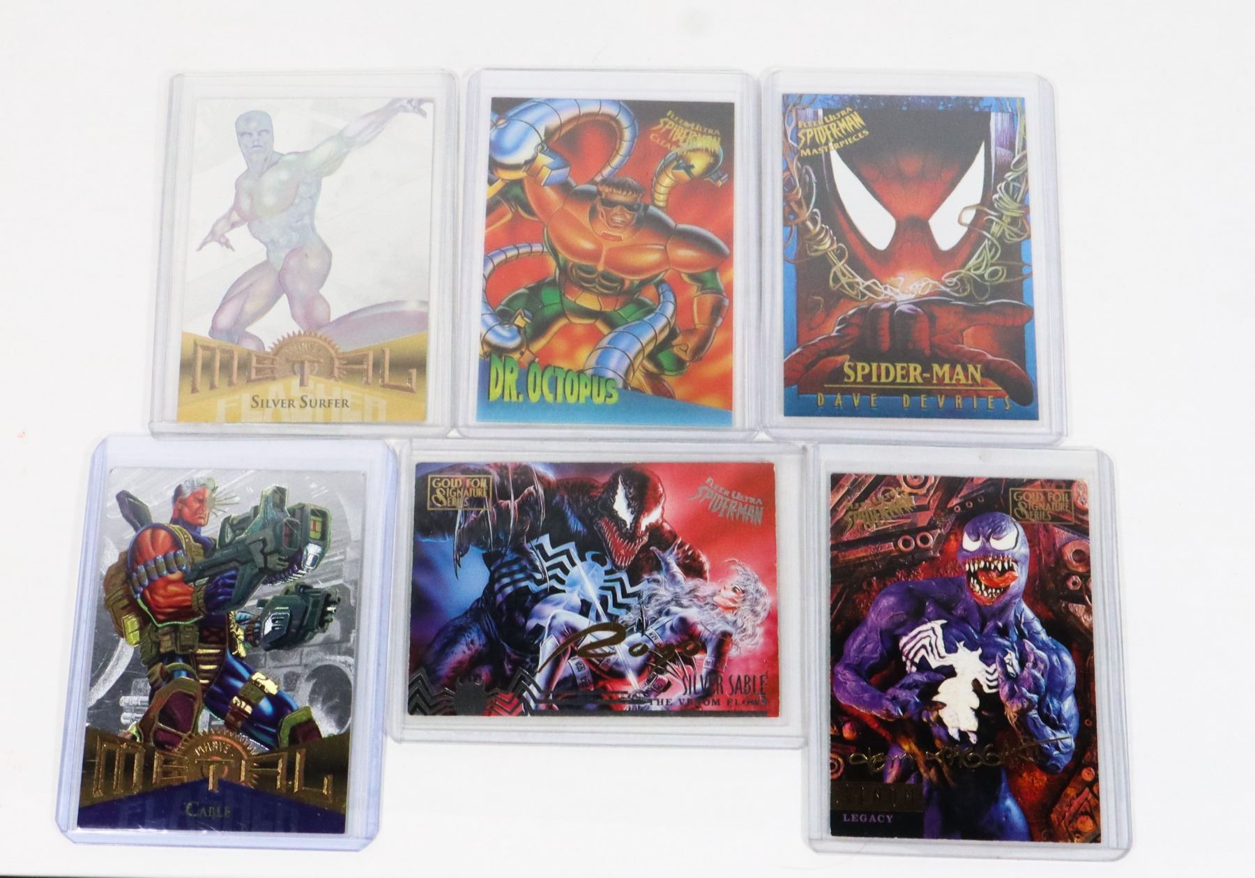 LOT OF 6 CARDS INCLUDING SILVER SURFER DR. OCTOPUS SPIDER-MAN CABLE VENOM AND SILVER SABLE 1995