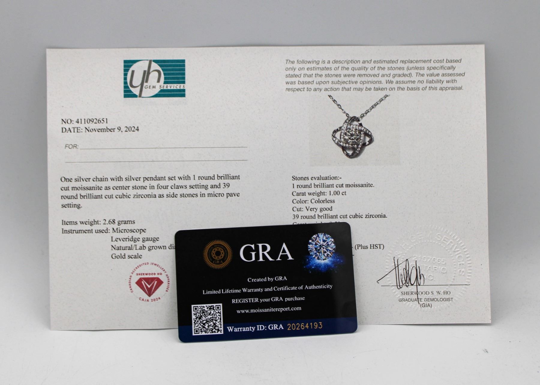 MOISSANITE STONE VVS D COLOR SET IN CENTER OF CLOVER HALO WITH 39 ROUND BRILLIANT CUT CUBIC ZIRCONIA SET IN 925 SILVER PENDANT RETAIL VALUE $675.00