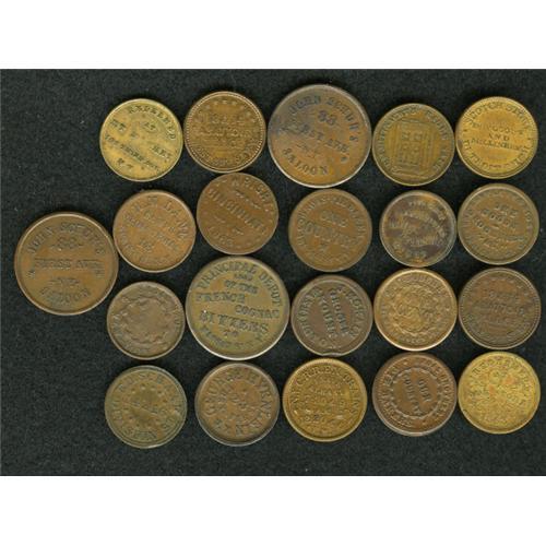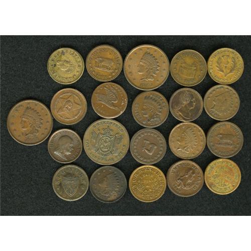 <B> (11861-1865) U.S. Civil War Storecard Group Lot of 21 Tokens.</B></I> A nice lot of identified tokens, suitable as a starter collection or an addition to one's collection. Current market value is about $200-$400.