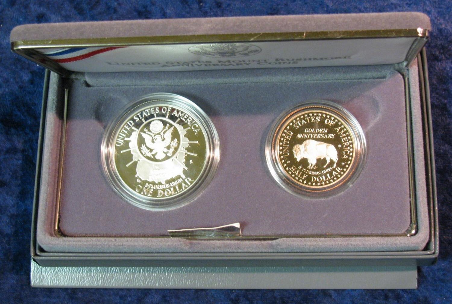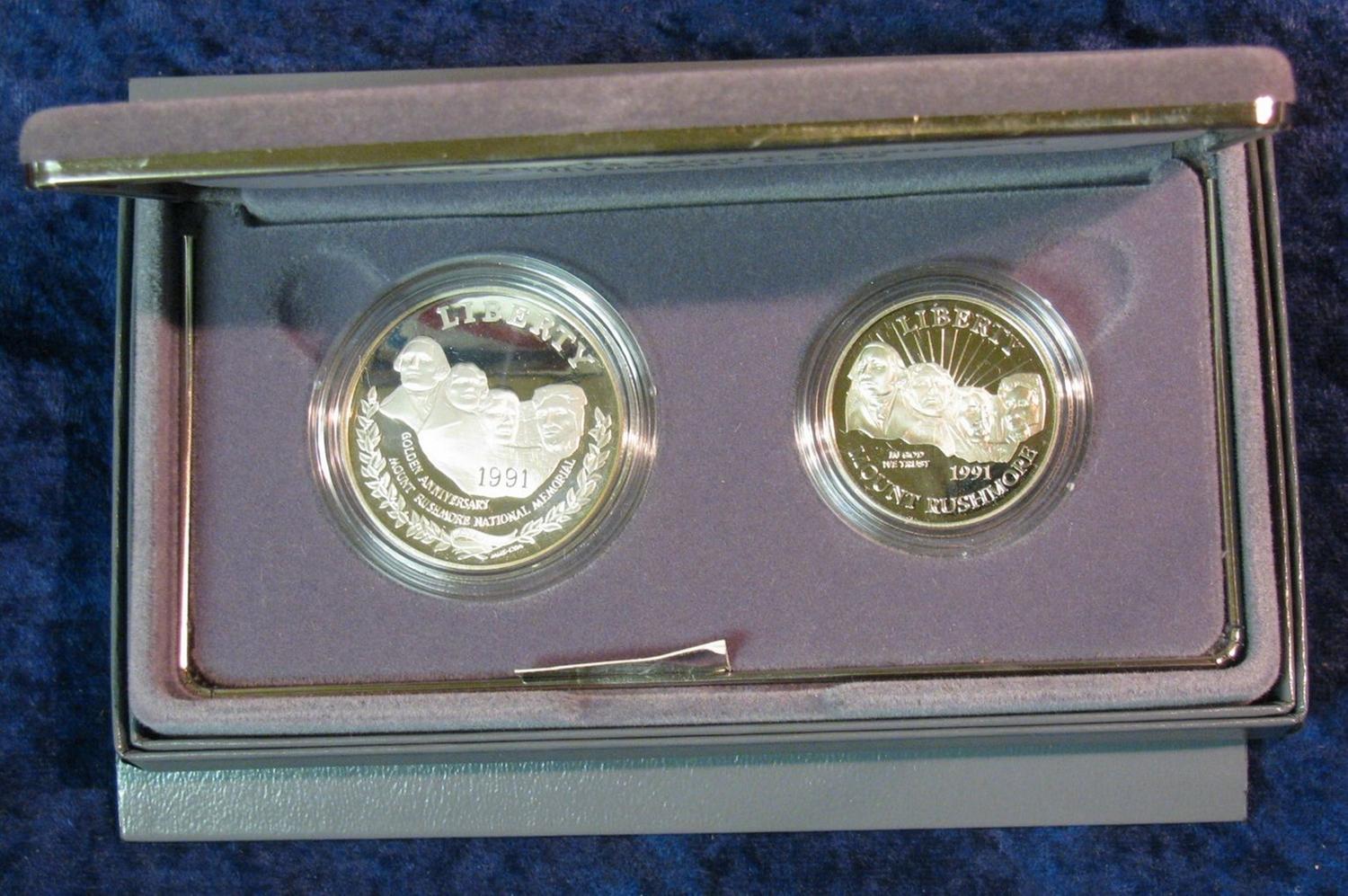 1187. 1991S Mount Rushmore Silver Dollar and Half. Proof.