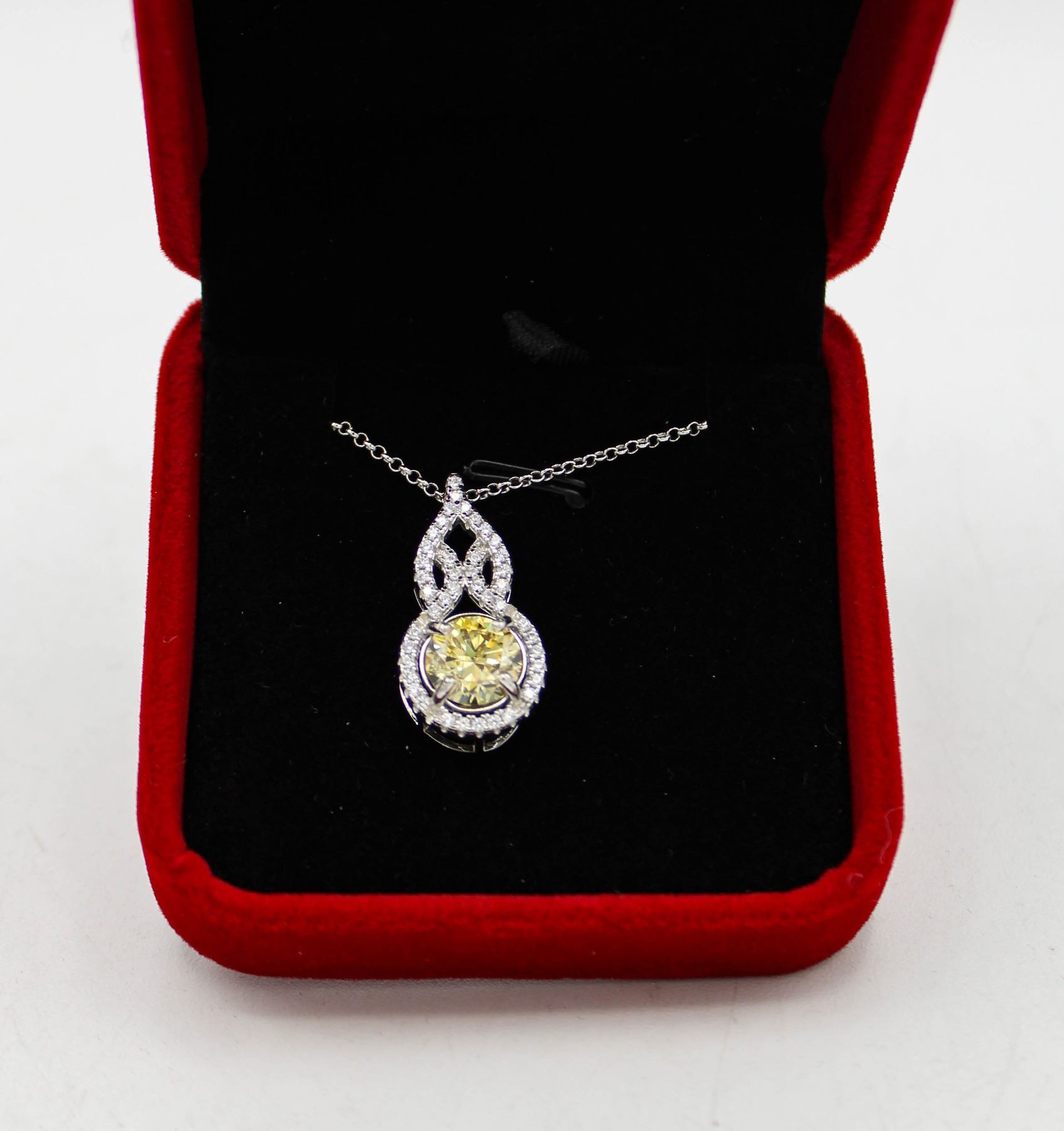 MOISSANITE STONE VVS LEMON YELLOW COLOR SET IN CENTER OF HALO WITH 44 ROUND BRILLIANT CUT CUBIC ZIRCONIA SET IN 925 SILVER PENDANT AND BALE