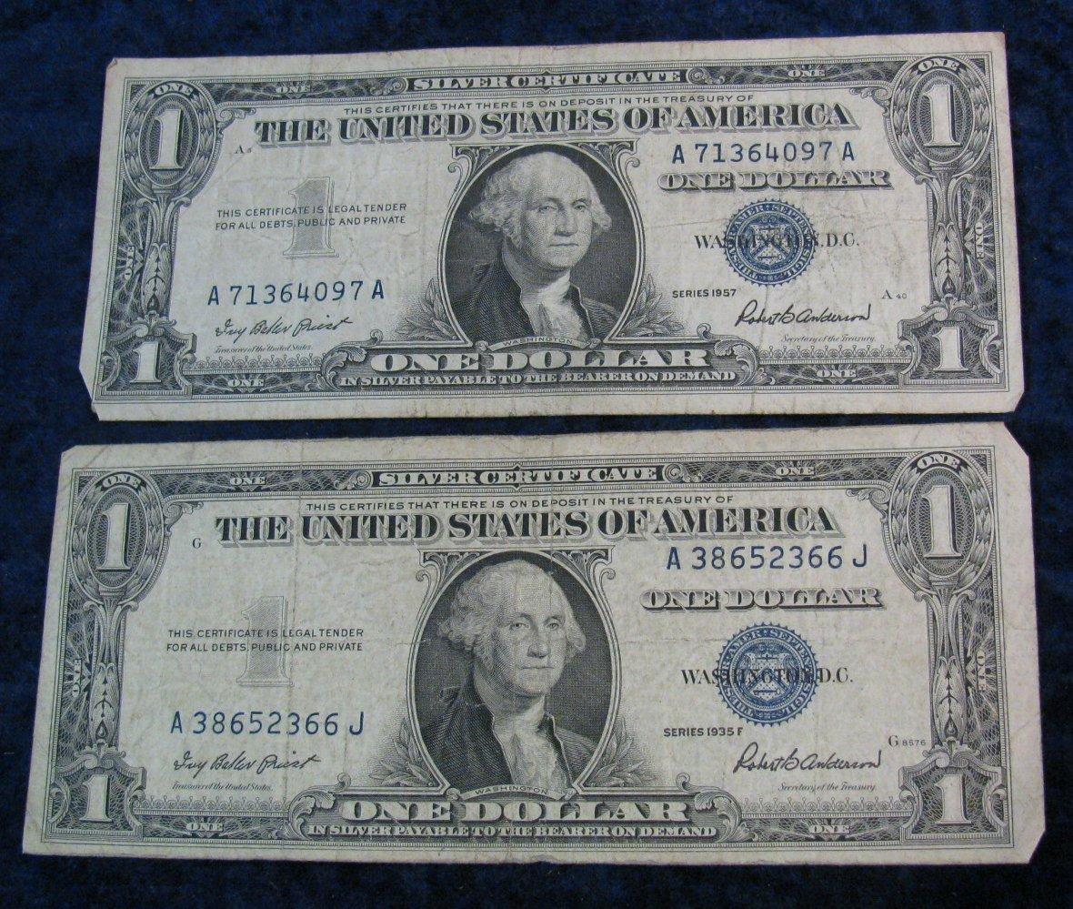 1187. Series 1935F & 1957 $1 Silver Certificates. VG.