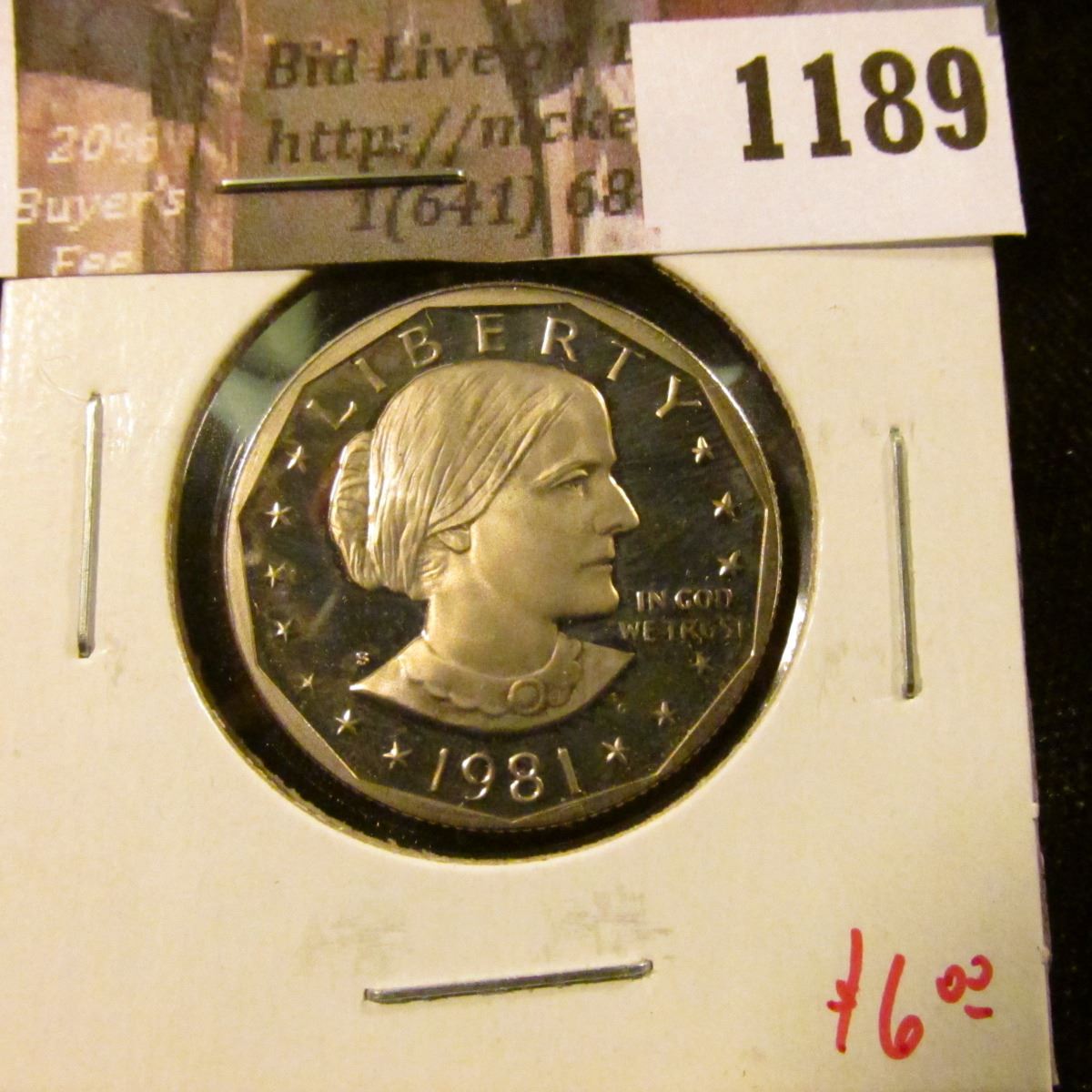 1189 . 1981-S type 1 Proof Susan B. Anthony Dollar, value $6