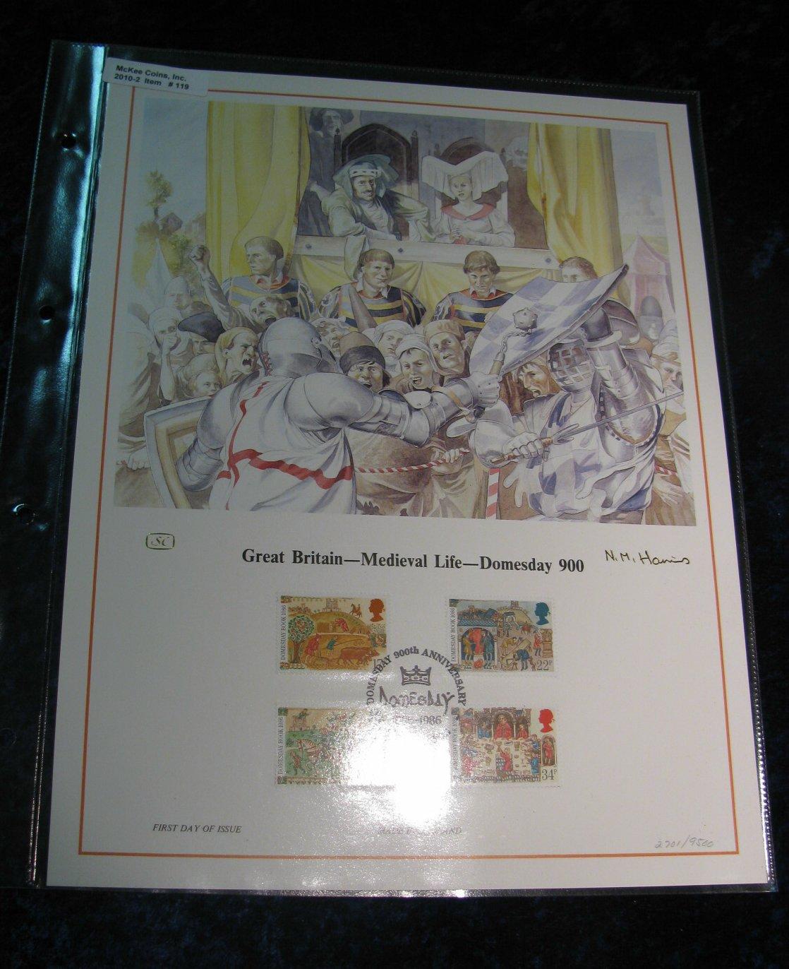 119. Great Britain - Medieval Life -Domesday 900 First Day of Issue Cover with stamps and Illustration. Signed and numbered limited edition of 9,500.