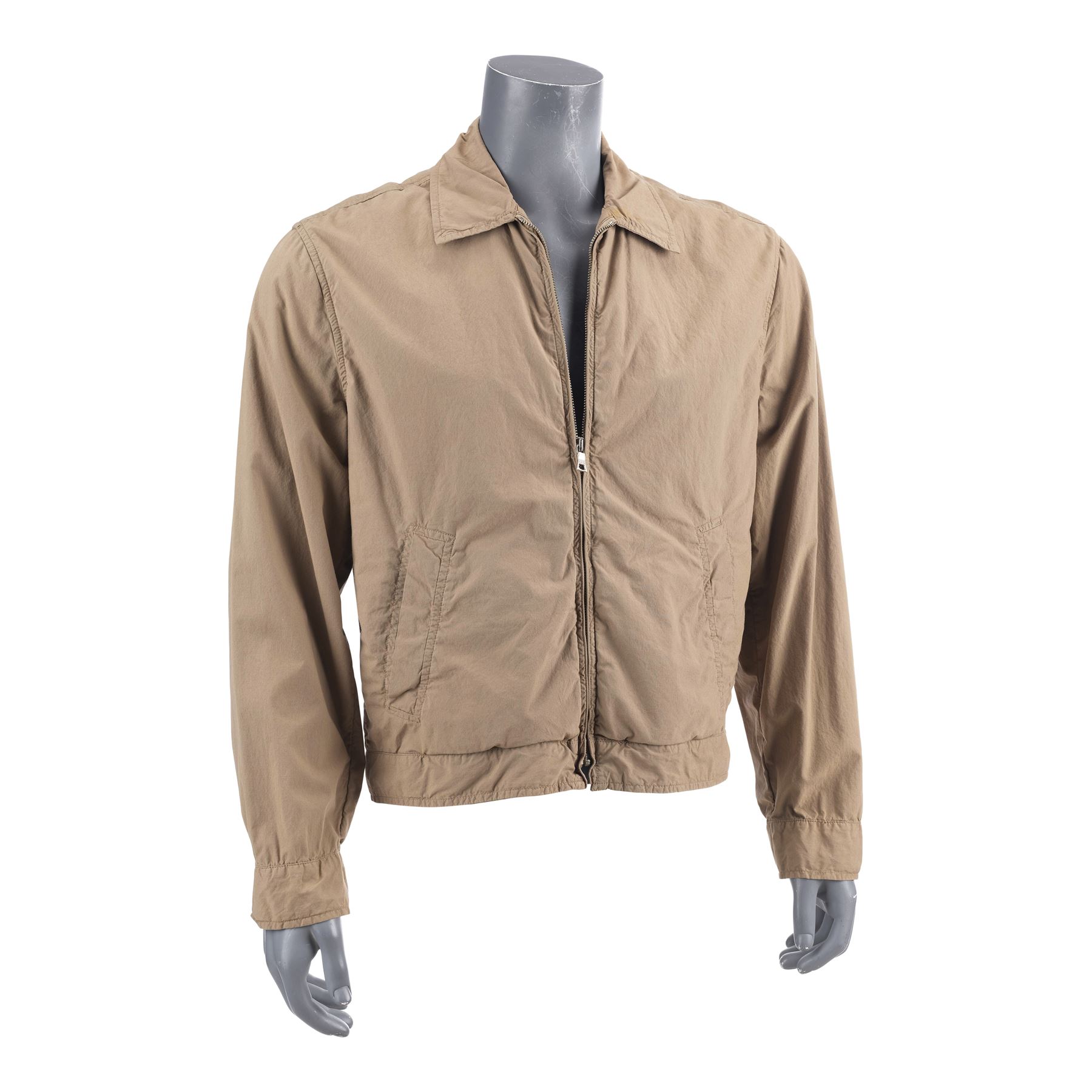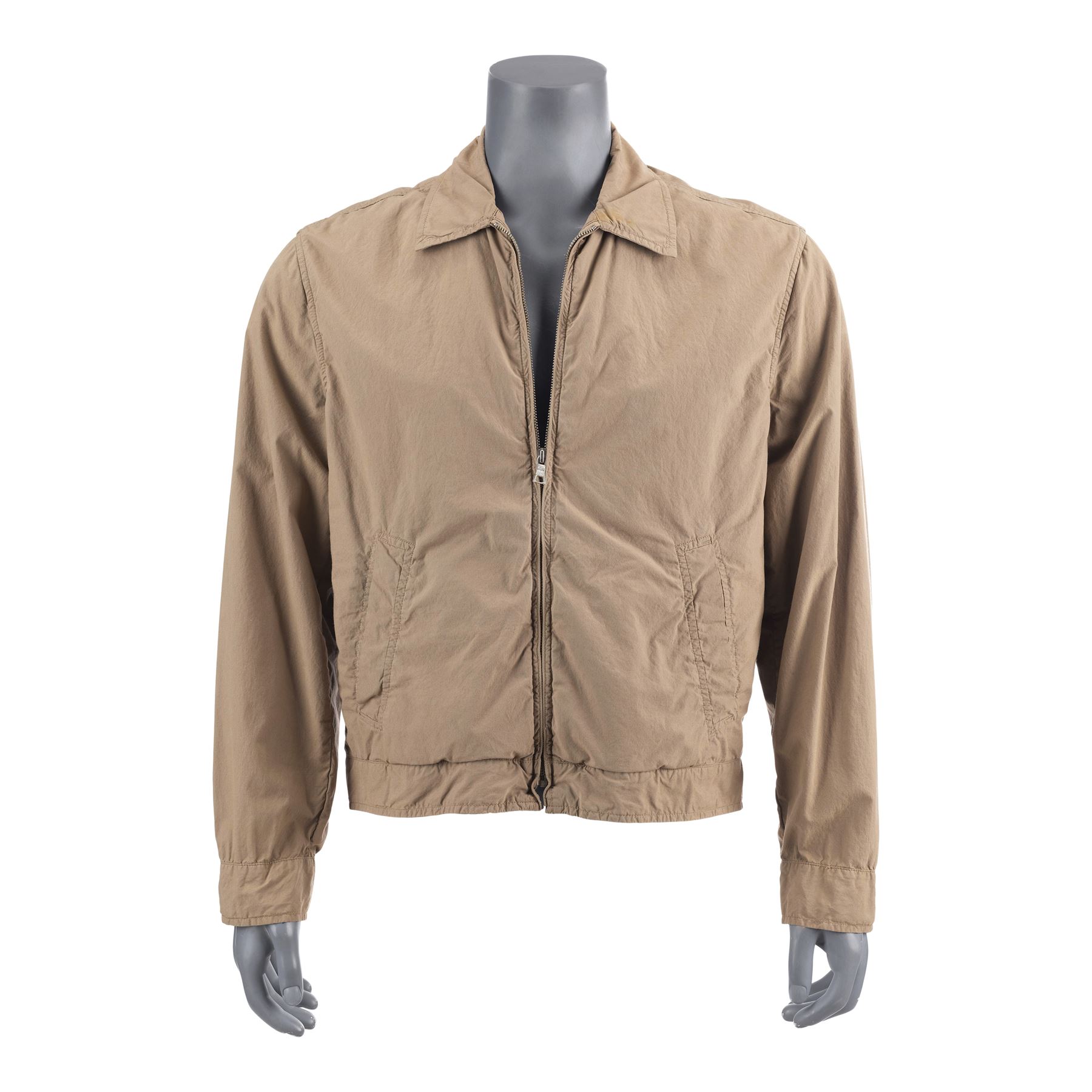 FIGHT CLUB (1999) - The Narrator's (Edward Norton) Tan Jacket - The Narrator's (Edward Norton) tan jacket from David Fincher's Fight Club. The Narrator wore his jacket while he and Tyler Durden (Brad Pitt) caused mayhem in the city including reversing spiked speed bumps and smashing headlights; and when he rode the bus back to Tyler's house as he contemplated why Tyler was gathering men.