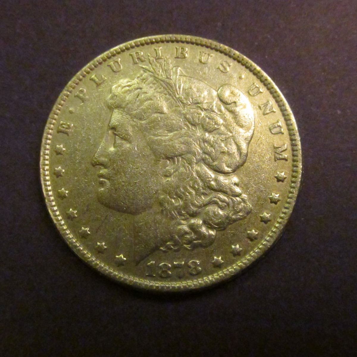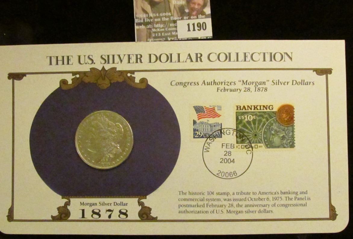1878 P 7 tail feathers Morgan Silver Dollar in a special protected cover with post marked commemorative cover and stamps.