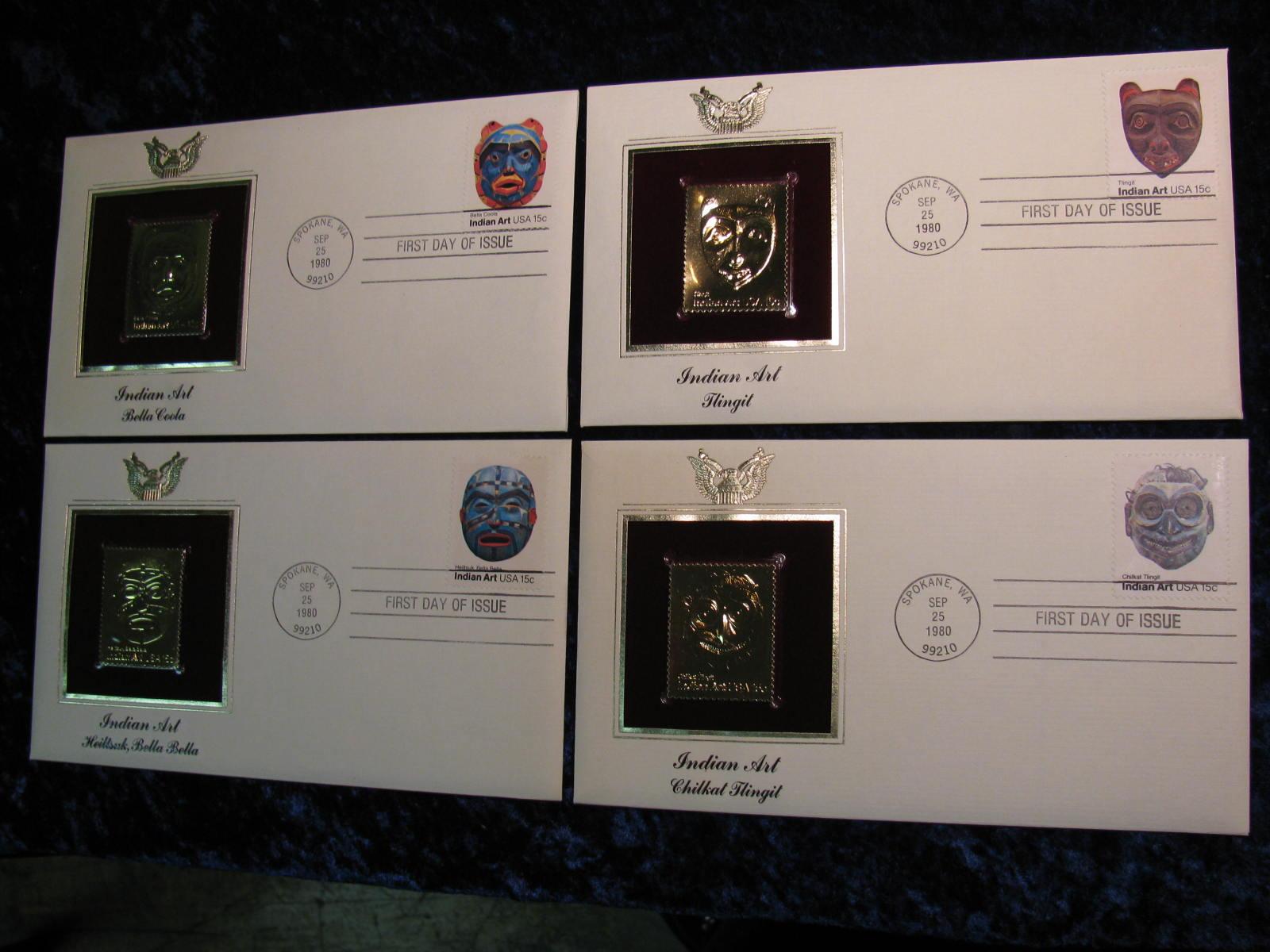 1190. 1980 (4) 24K Gold First Day Covers Indian Art.