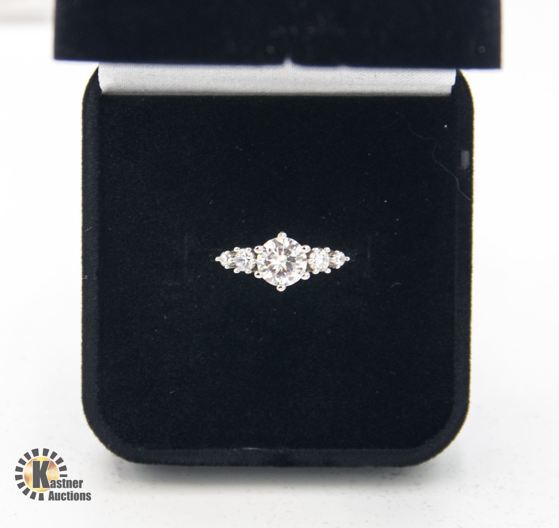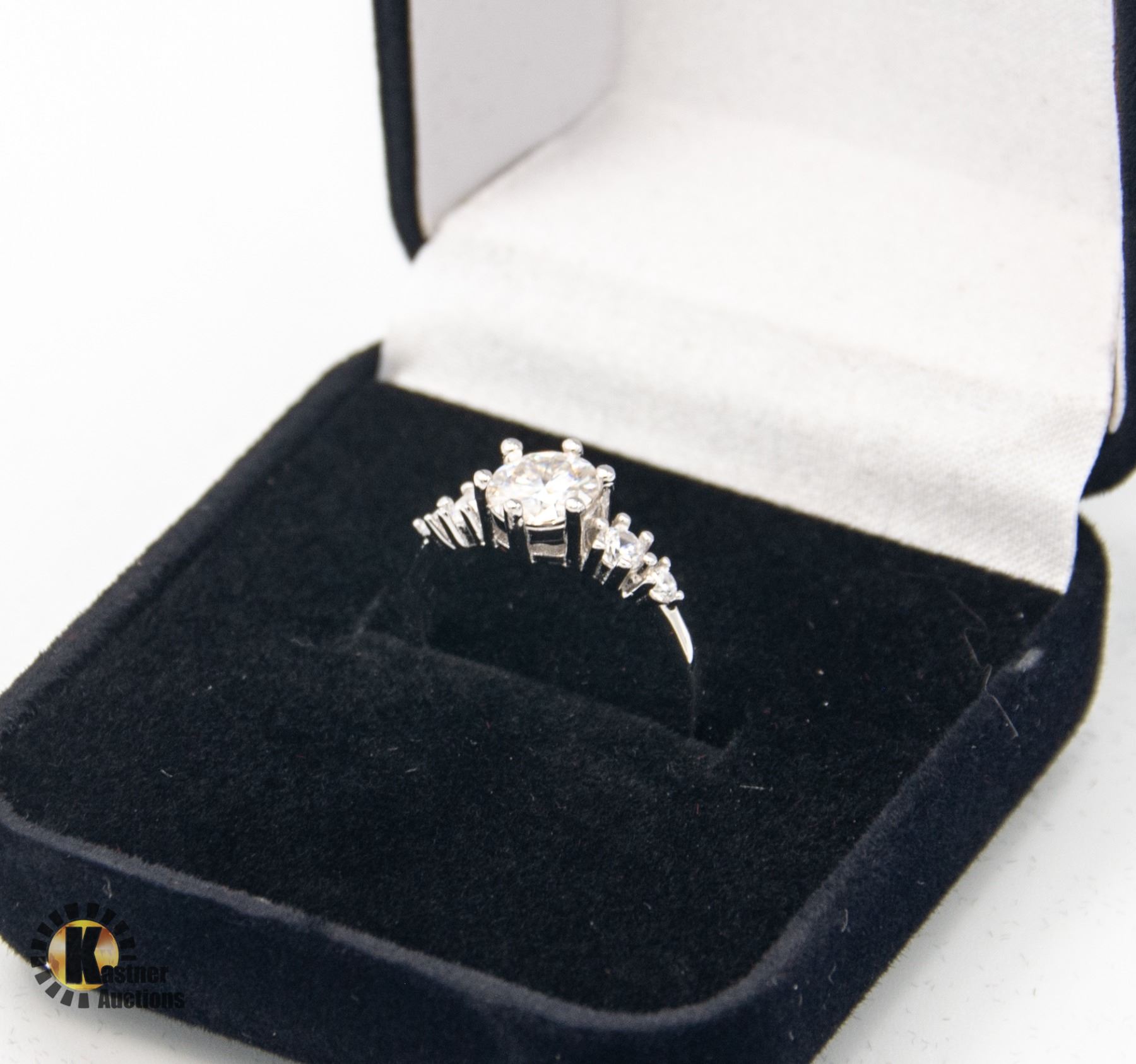 CUT MOISSANITE STONE VVS D COLOR SET IN CENTER SET IN 925 SILVER RING SIZE 5