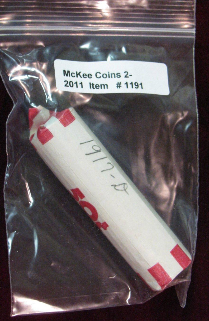 1191. 1917D Circulated Lincoln Cent Roll.