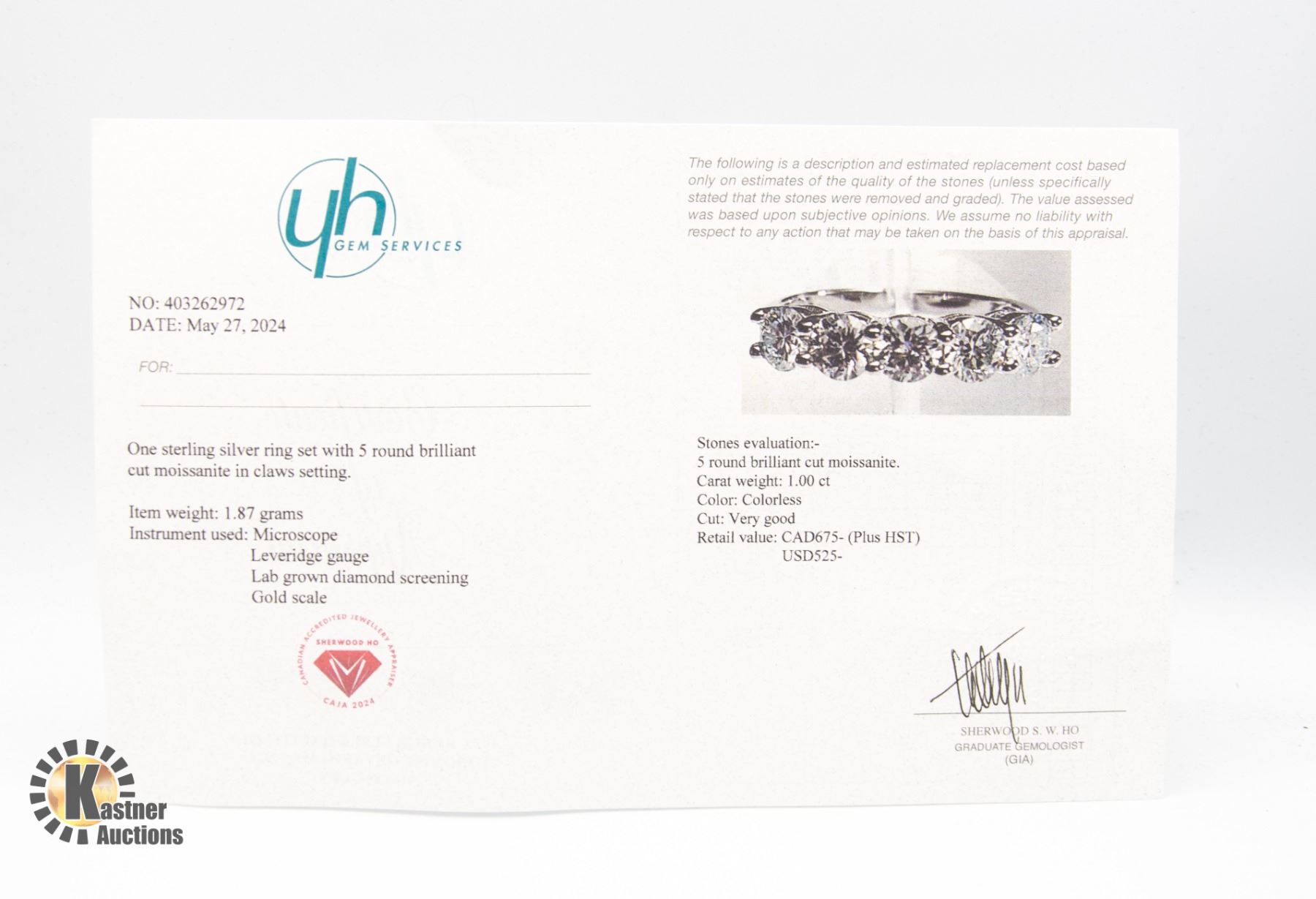 MOISSANITE STONE VVS D COLOR SET IN 925 SILVER RING SIZE 6.75 RETAIL VALUE $675.00