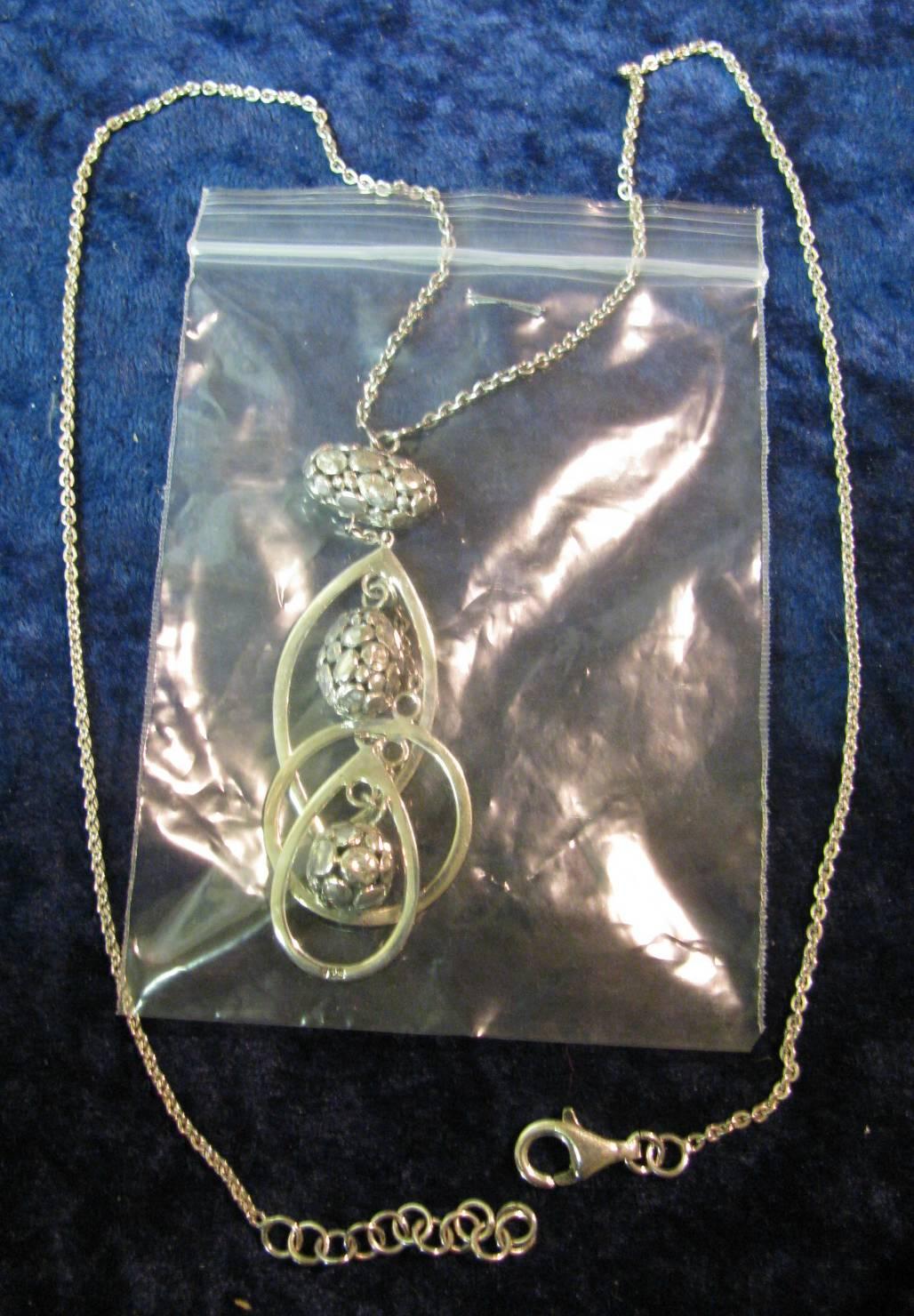 1192. Ladies Silver Necklace with dangles. New.