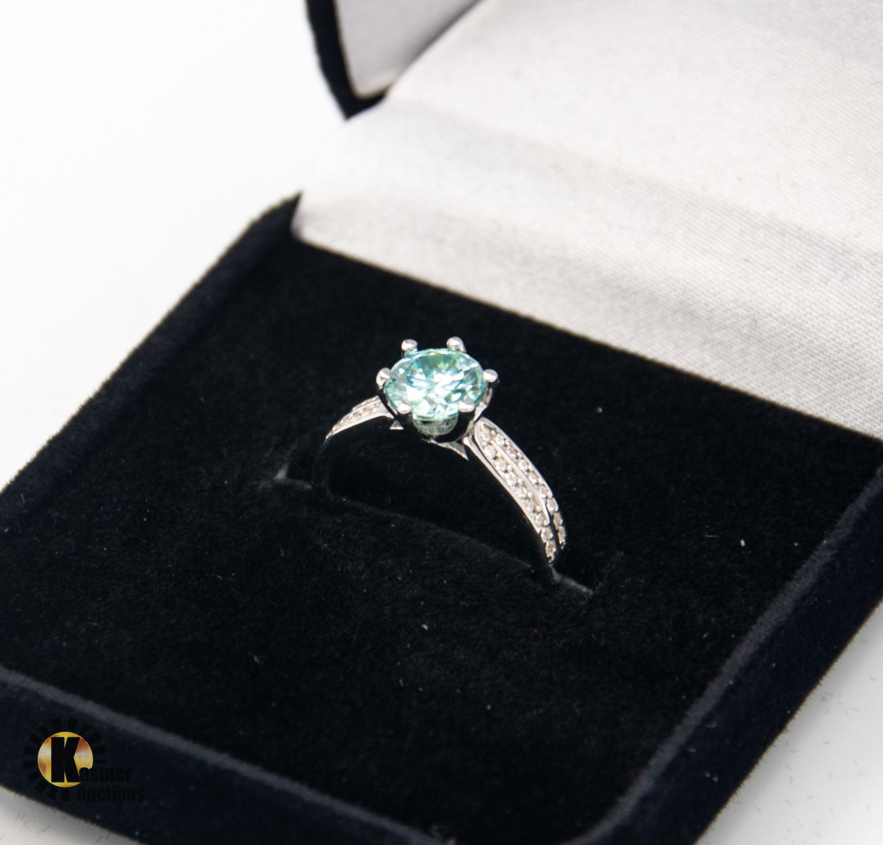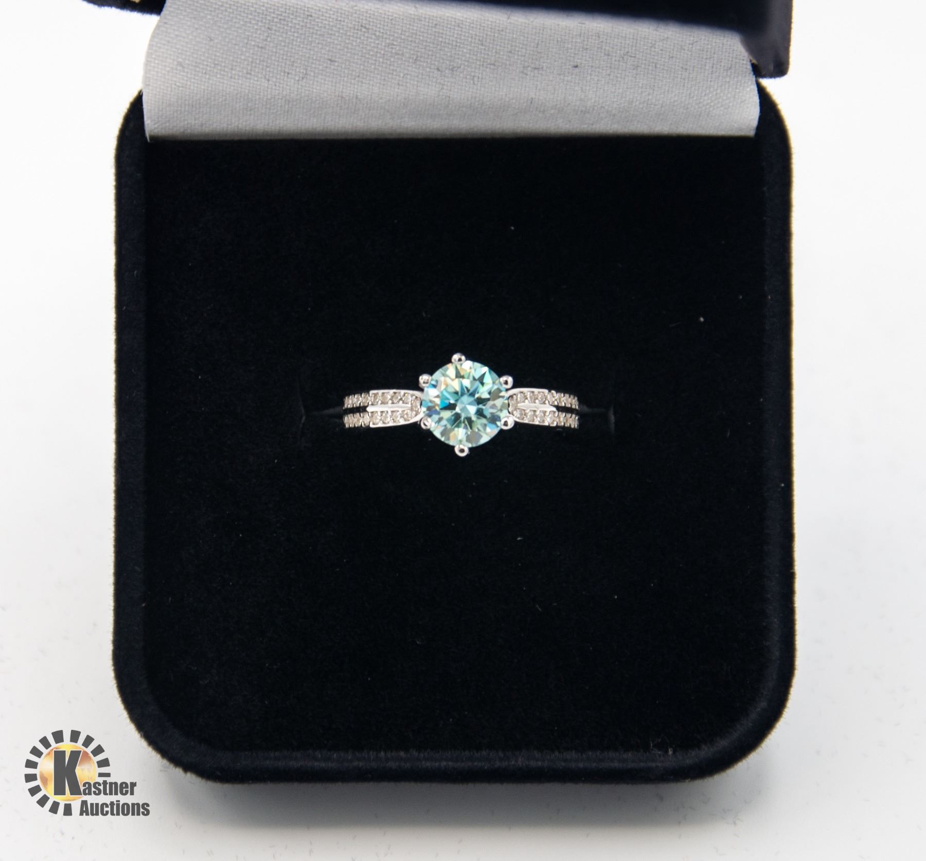 CUT MOISSANITE STONE VVS BLUE COLOR SET IN CENTER SET IN 925 SILVER RING SIZE 5 RETAIL VALUE $725.00