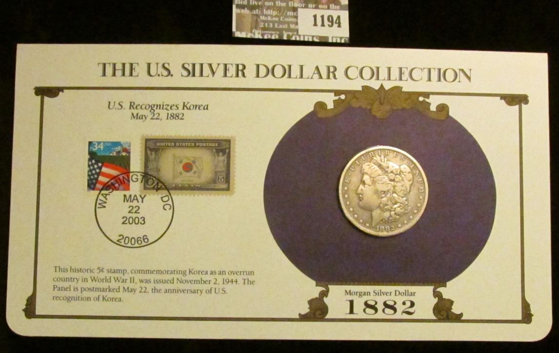 1882 New Orleans Mint Morgan Silver Dollar in a special protected cover with post marked commemorative cover and stamps.