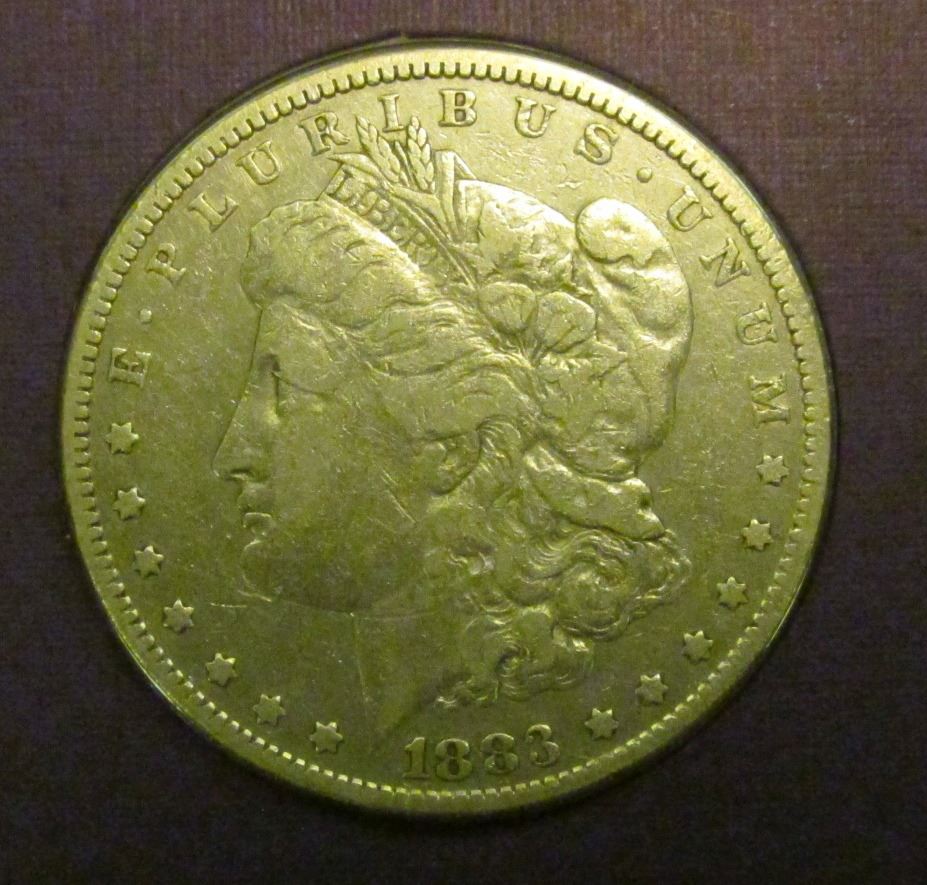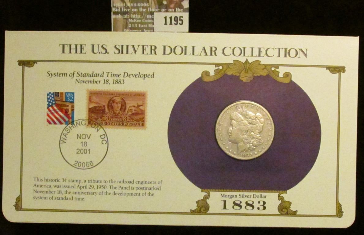 1883 P Philadelphia Mint Morgan Silver Dollar in a special protected cover with post marked commemorative cover and stamps.