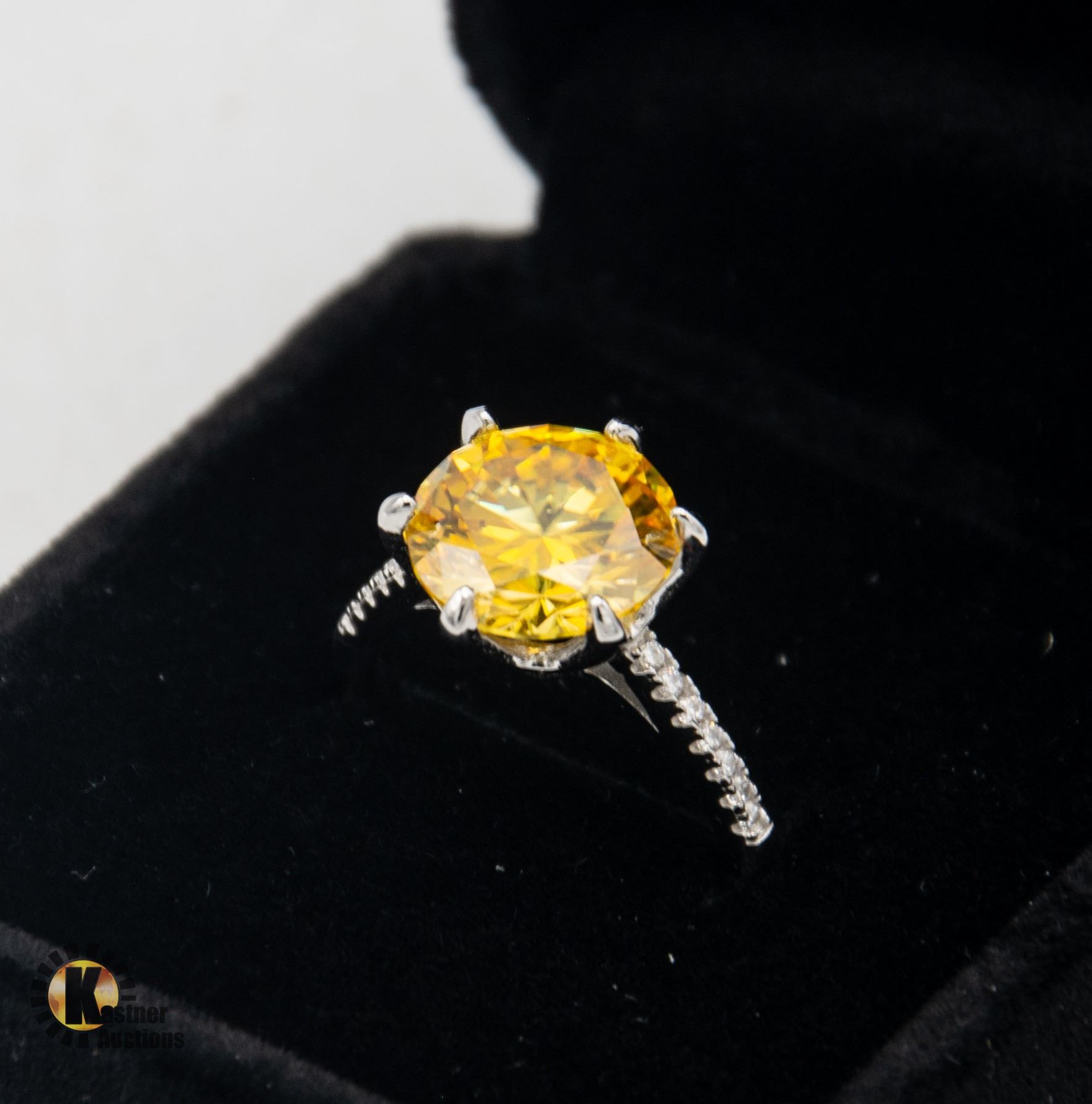 MOISSANITE STONE VVS D COLOR WITH 7 ROUND CUT CUBIC ZIRCONIA SET ON EACH SHANK SET IN 925 SILVER RING SIZE 7.25 **ALL ITEMS MUST BE REMOVED BY 5PM SATURDAY, DECEMBER 14th 2024. ALL REMAINING ITEMS WILL BE SUBJECT TO A $6.00 PER DAY STORAGE CHARGE. ANY ITEMS REMAINING AFTER MONDAY, DECEMBER 30TH 2024 WILL BE CONSIDERED FORFEITED. NO REFUNDS WILL BE ISSUED FOR FORFEITED ITEMS. TO SCHEDULE A PICK UP APPOINTMENT CLICK HERE