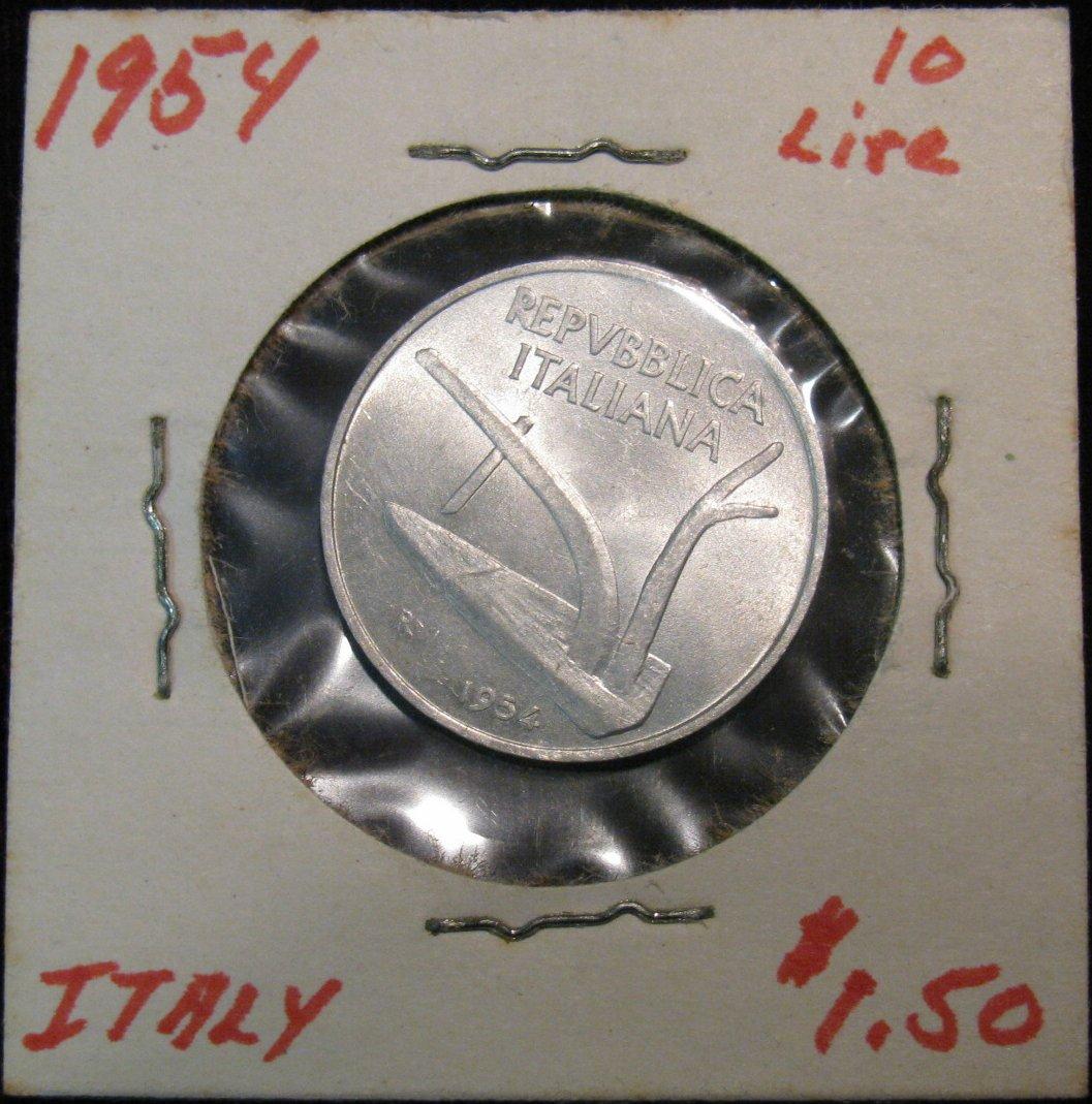 1195. Italy 1954R 10-Lira Unc. Cat. Value $40.