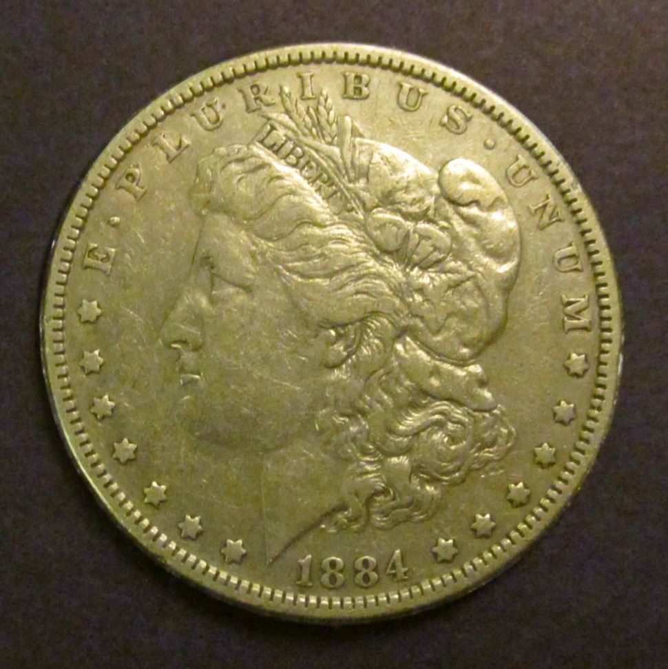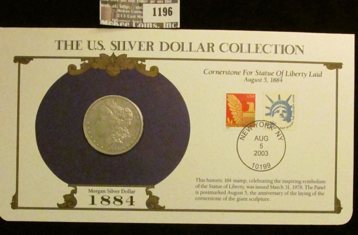 1884 P Philadelphia Mint Morgan Silver Dollar in a special protected cover with post marked commemorative cover and stamps.