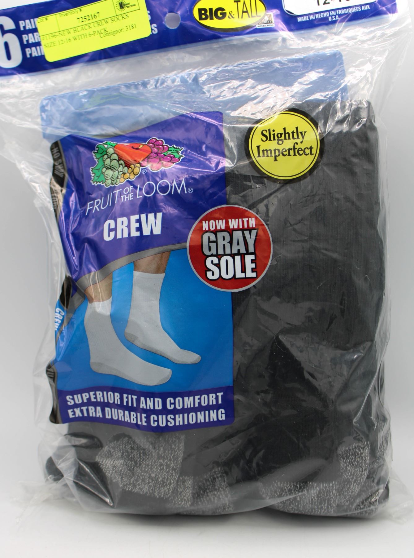 #1196-NEW BLACK CREW SOCKS SIZE 12-16 WITH 6-PACK