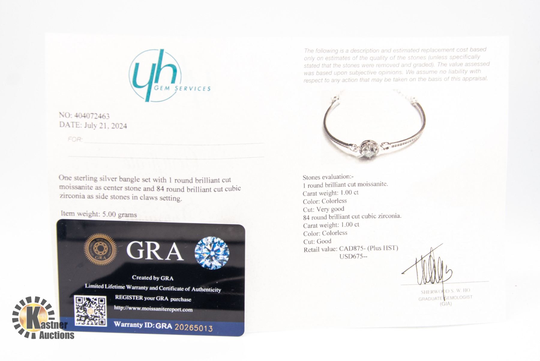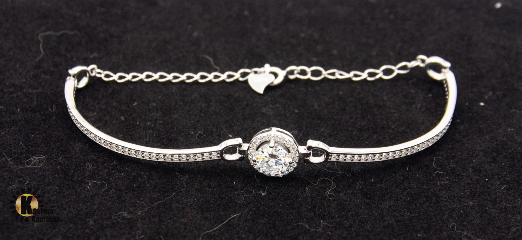 BRILLIANT CUT MOISSANITE STONE VVS D COLOR SET IN CENTER SET IN 925 SILVER BRACELET RETAIL VALUE $875.00