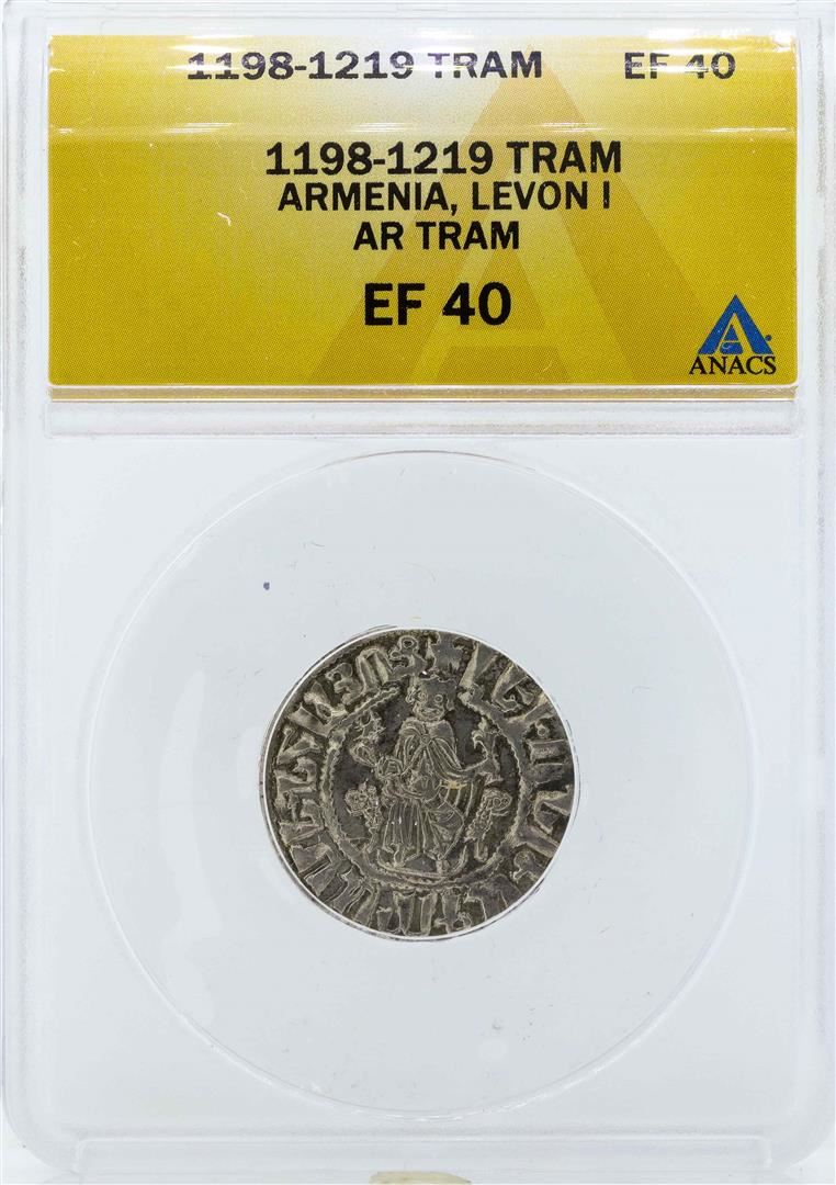 One 1198-1219 Armenia Tram Levon I Coin ANACS EF40. ANACS Certified.