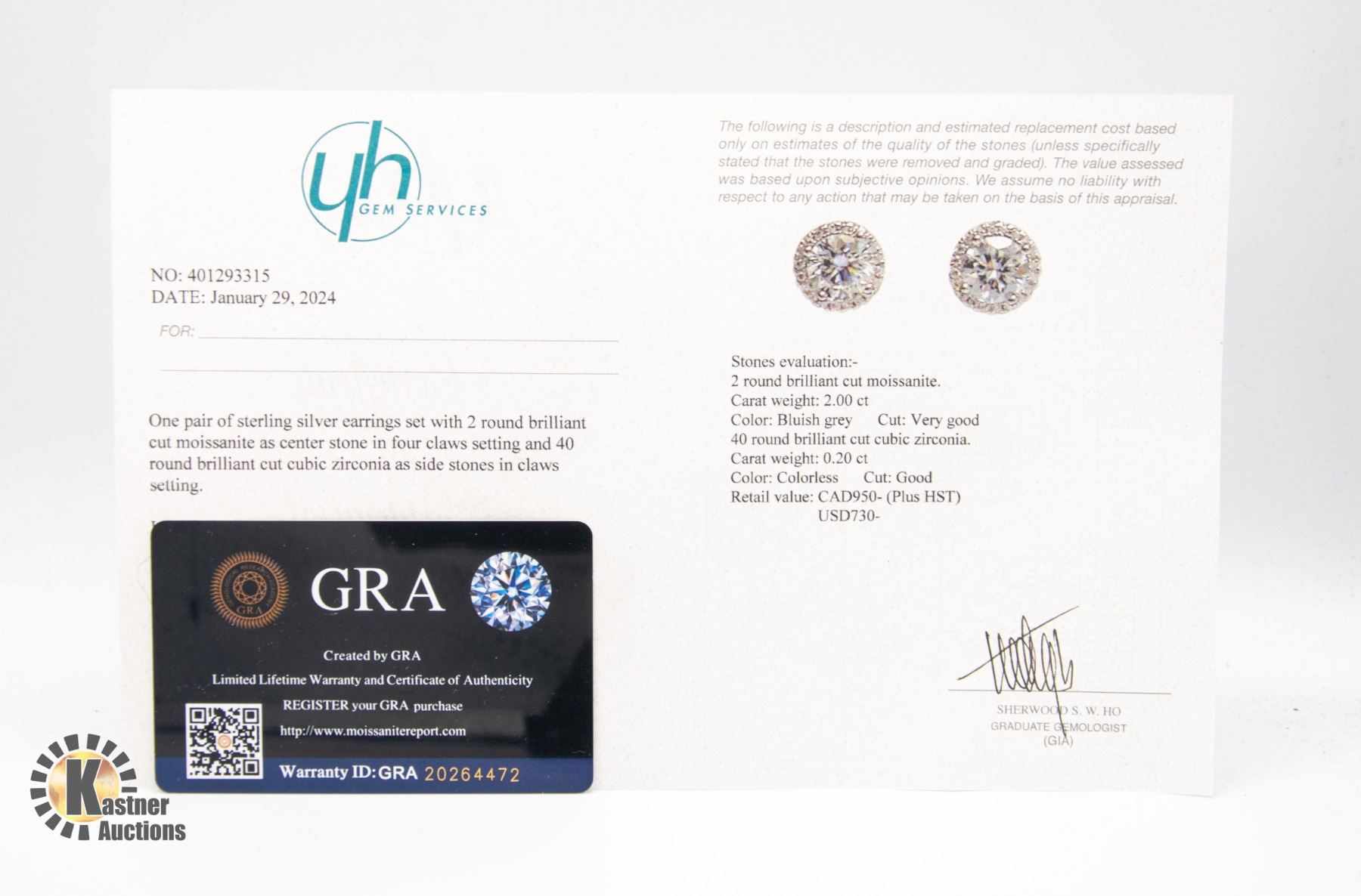 BRILLIANT CUT MOISSANITE STONES VVS D COLOR SET IN CENTER IN 925 SILVER EARRINGS WITH SCREW BACKS RETAIL VALUE $950.00