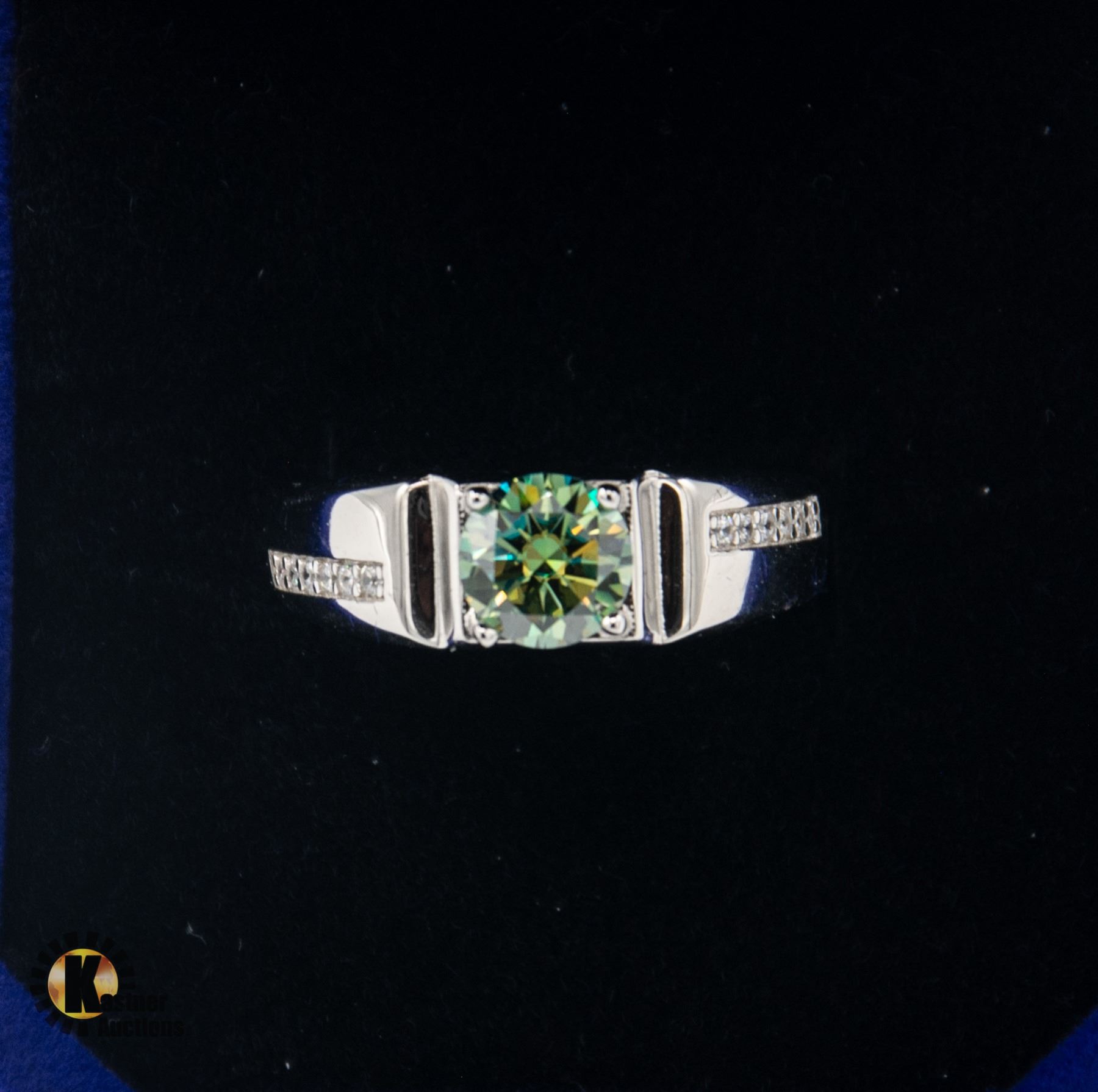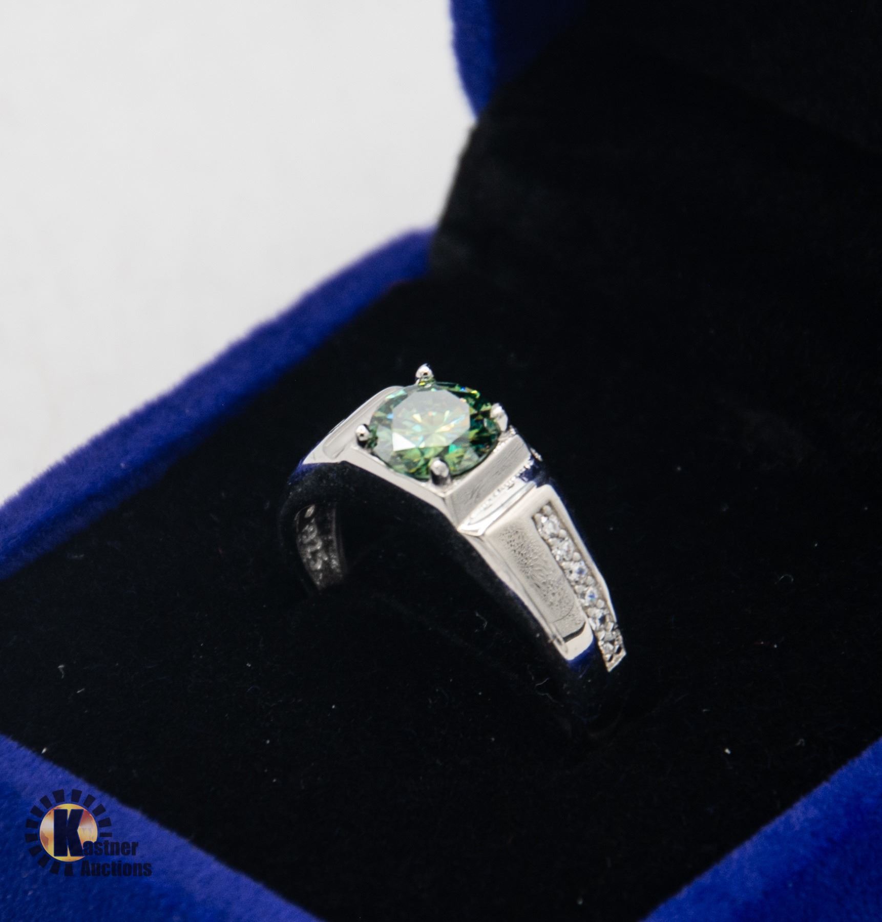 MOISSANITE STONE VVS BLUE/GREEN COLOR SET IN CENTER WITH 6 ROUND CUT CZ’S SET DOWN EACH SHANK SET IN 925 SILVER RING SIZE ADJUSTABLE **ALL ITEMS MUST BE REMOVED BY 5PM SATURDAY, DECEMBER 14th 2024. ALL REMAINING ITEMS WILL BE SUBJECT TO A $6.00 PER DAY STORAGE CHARGE. ANY ITEMS REMAINING AFTER MONDAY, DECEMBER 30TH 2024 WILL BE CONSIDERED FORFEITED. NO REFUNDS WILL BE ISSUED FOR FORFEITED ITEMS. TO SCHEDULE A PICK UP APPOINTMENT CLICK HERE