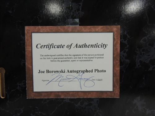 11X13 BASEBALL PHOTO ON PLAQUE AUTOGRAPHED JOE BOROWSKI COA. COA DATED 11/2003. AS SHOWN. VIEW PICTURE FOR DETAIL.