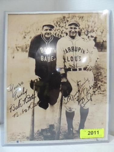 11X14 BASEBALL 1993 PRINT LOU GEHRIG & BABE RUTH. SIGNATURE IS PART OF THE PRINT NOT ORIGINAL. THE PRINT IS FROM THE ORIGINAL PHOTO AND IS RELEASED BY THE ESTATE OF GEHRIG & RUTH. AS SHOWN. VIEW PICTURE FOR DETAIL.
