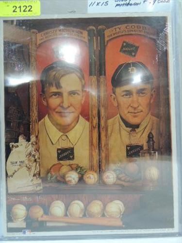 11X14 BASEBALL PRINT CHRISTY MATHEWSON & TY COBB MEMENTOS. PRINT FROM ORIGINAL NEGATIVE. LETTER OF AUTHENTICITY. AS SHOWN. VIEW PICTURE FOR DETAIL.