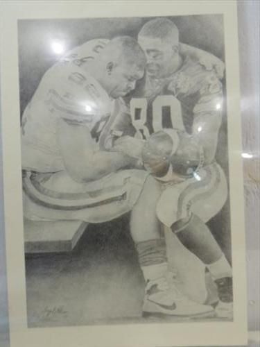 11X17 FOOTBALL ARTIST PROOF, LARRY PETERSON, REGGIE WHITE & CHRIS CARTER, SIGNED & NUMBER PRINT. GREEN BAY PACKERS. AS SHOWN. VIEW PICTURE FOR DETAIL.