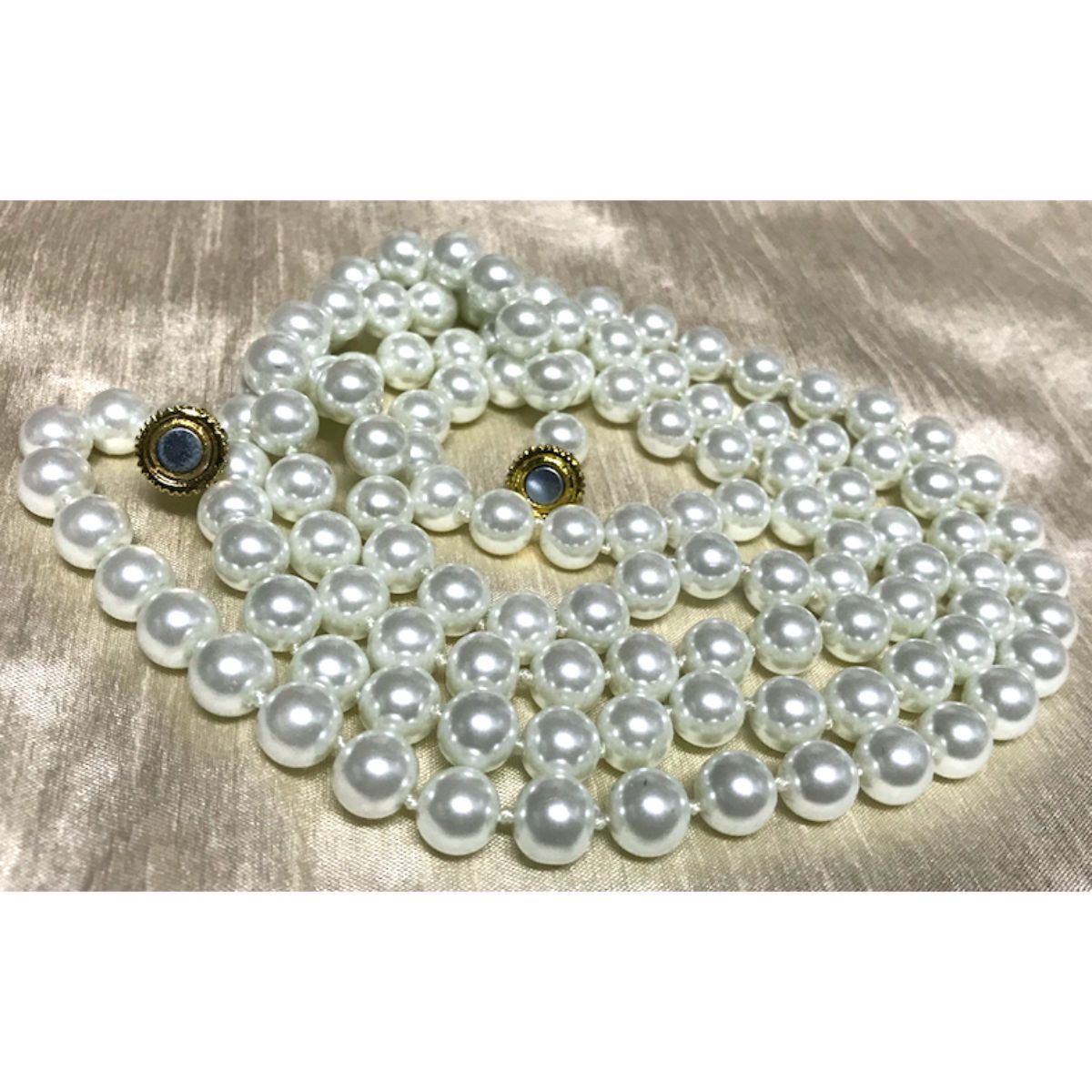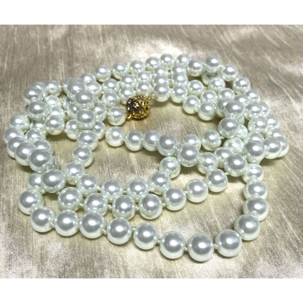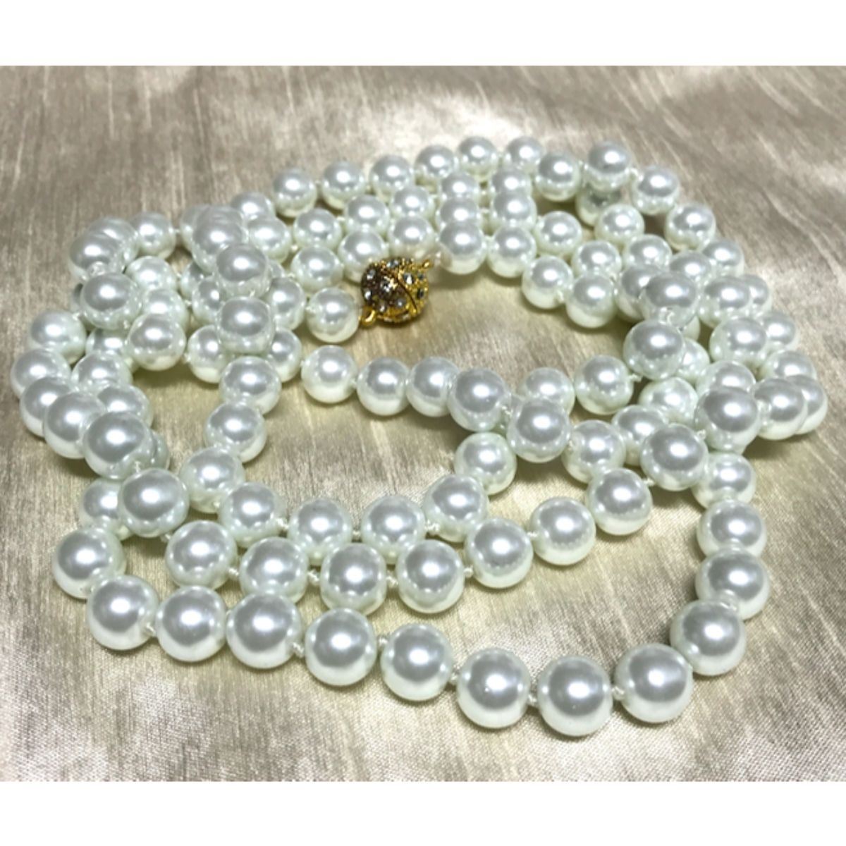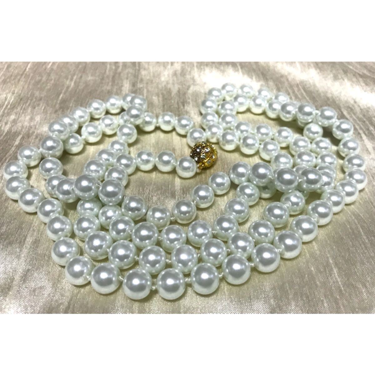 11mm White Shell Pearls, 52" rope necklace, with easy to open & close magnetic gold & crystal-embellished clasp.