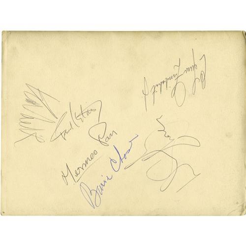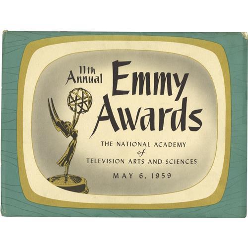 <B>11th Annual Emmy Awards Signed Program Book.</B></I> A program for the 11th annual Emmy Awards, held May 6, 1959, signed on the back by Efram Zimbalist Jr., Fred Astaire, Dennis Weaver, Dinah Shore, Hermes Pan, and Barrie Chase. The awards that year were concurrently held at the Moulin Rouge Nightclub in Hollywood, the Ziegfeld Theatre in New York, and the Mayflower Hotel in Washington, DC, and hosted by Raymond Burr, who coincidentally won an award for Best Actor in a Dramatic series. This particular Emmy show awarded "An Evening with Fred Astaire" several honors, making this signed program very desirable with Astaire's signature. The program is in Fine condition with mild tanning and soiling, and some wear to the corners and edges.<BR><BR><b>Shipping:</b> Flat Material, Small (<a target="_blank" href="http://www.heritageauctions.com/common/shipping.php">view shipping information</a>)
