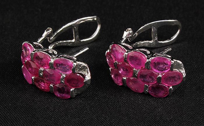 12.00ctw Pink Ruby Sterling Silver Cluster Earring 4.16 **|**|** Natural Ruby Corrundum Gemstone 20pcs Oval 6x4mm in Silver Earring; Size: 0.85x0.43 inches ; MSRP: $1000