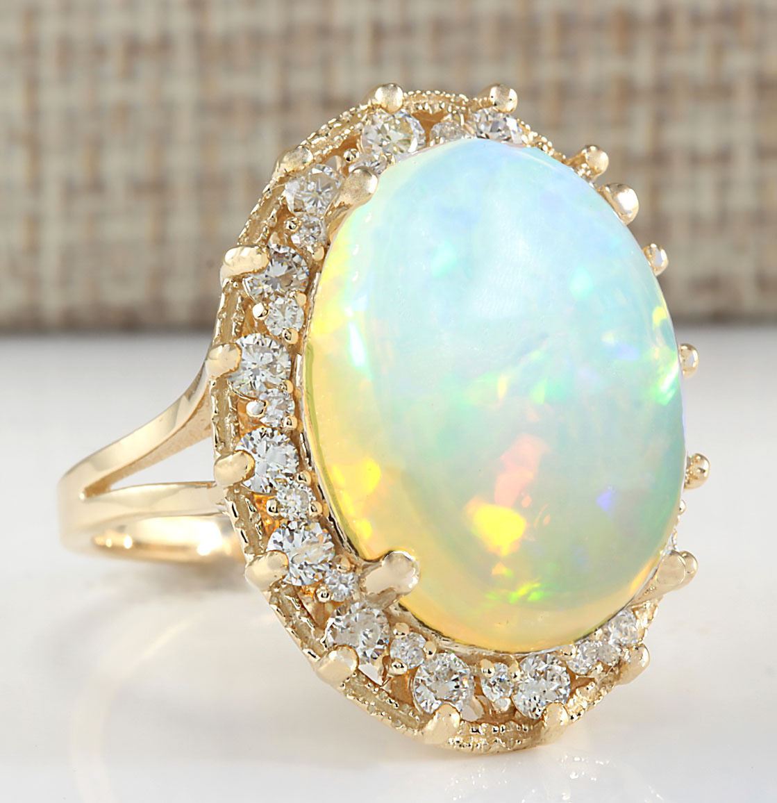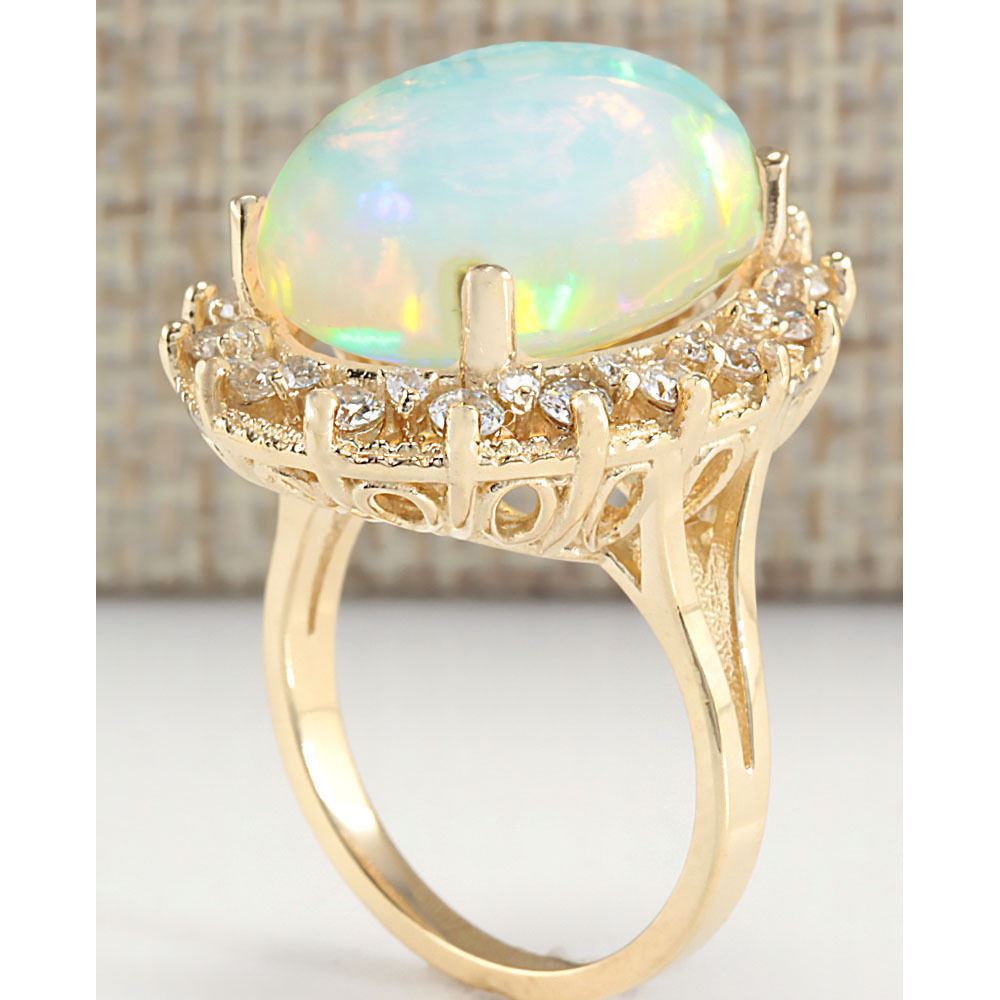 12.02 CTW Natural Opal And Diamond Ring In 18K Yellow Gold