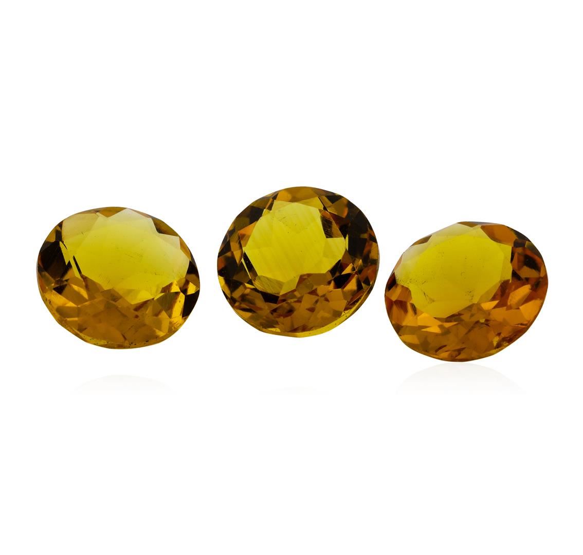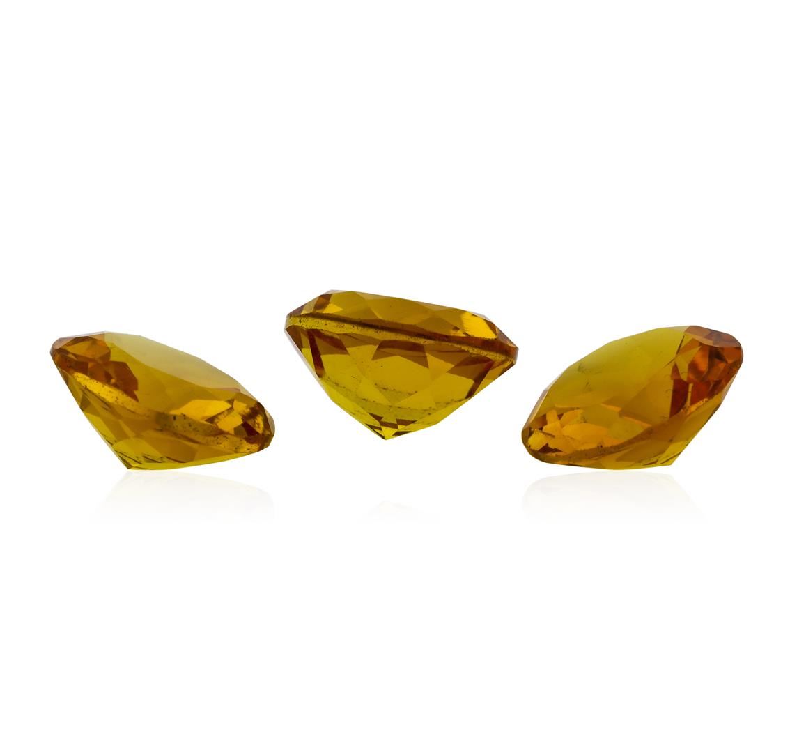 One natural round cut citrine quartz parcel of three with an exact weight of 12.02ctw., clarity is eye clean, yellowish orange. Gemological Appraisals Services estimates the retail value at $360.6 GAS Appraised.