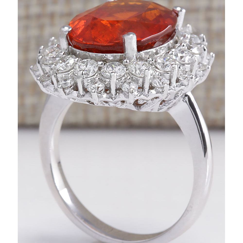 12.03 CTW Natural Mandarin Garnet And Diamond Ring 14K Solid White Gold