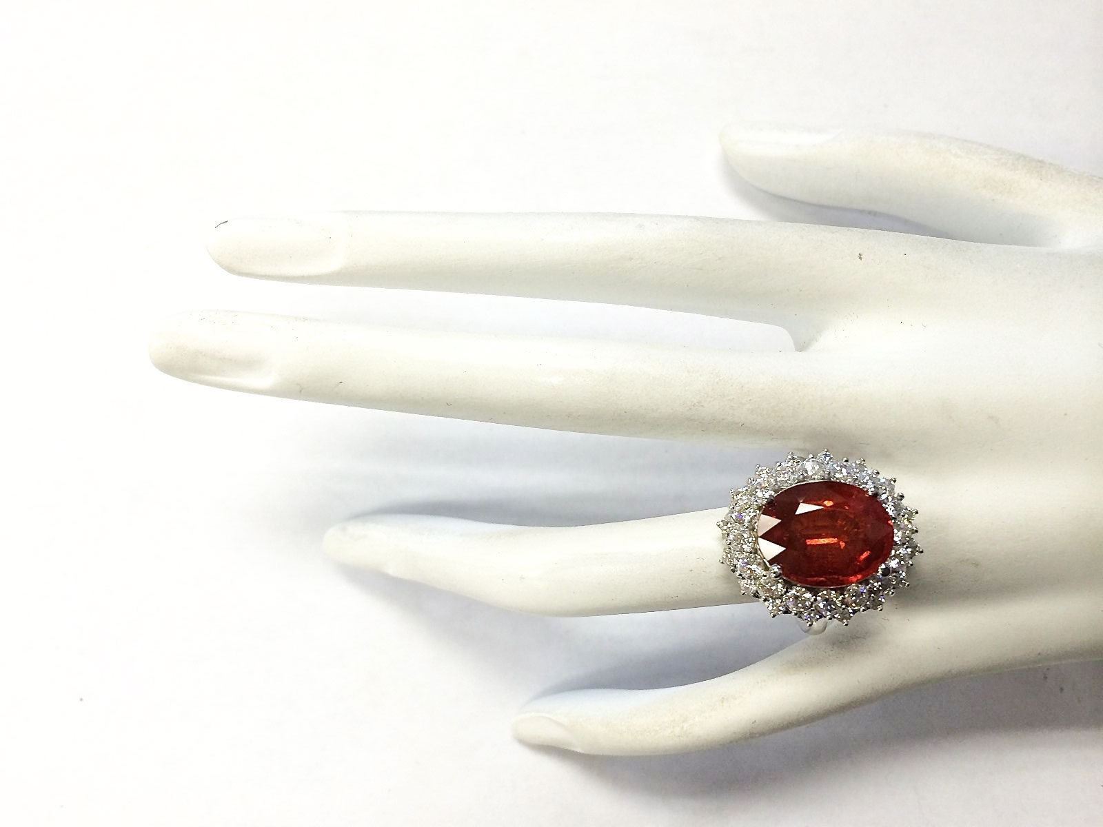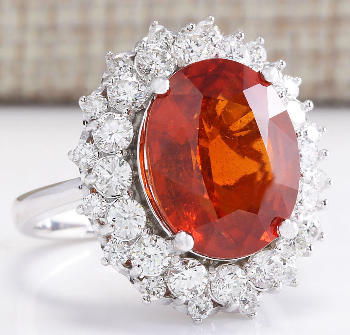 12.03 CTW Natural Mandarin Garnet And Diamond Ring 18K Solid White Gold