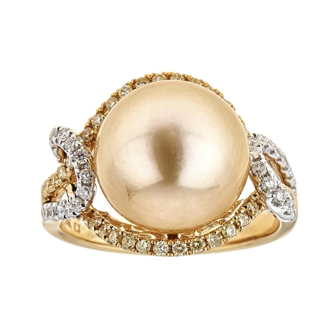 One South Sea Pearl and Diamond Ring featuring: 18K Two-Tone Gold with a total weight of 4.36 grams, One South Sea Pearl with a total weight of 12.03ct, 36 Yellow Diamonds with a total weight of 0.27ctw, and 28 Round Cut Diamonds with a total weight of 0.23ctw.