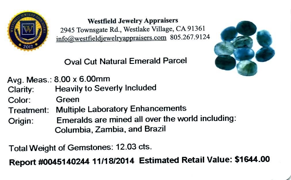 12.03cts. Oval Cut Natural Emerald Parcel Westfield Appraised at $1,644.00.