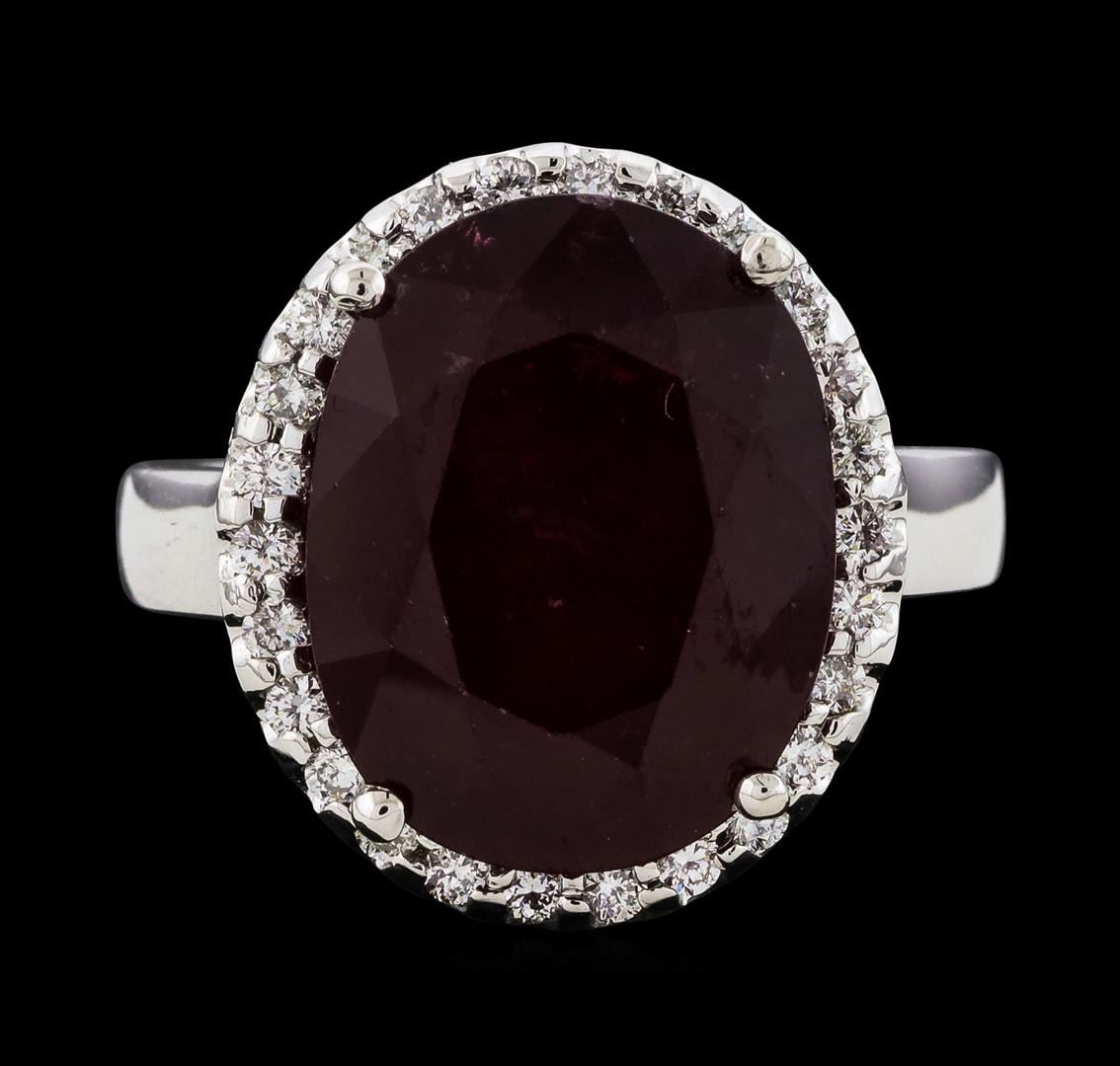 One Ruby and Diamond Ring featuring: 14KT White Gold with a total weight of 7.10 grams, Ruby with a total weight of 12.04ct, and 26 Diamonds with a total weight of 0.39ctw.