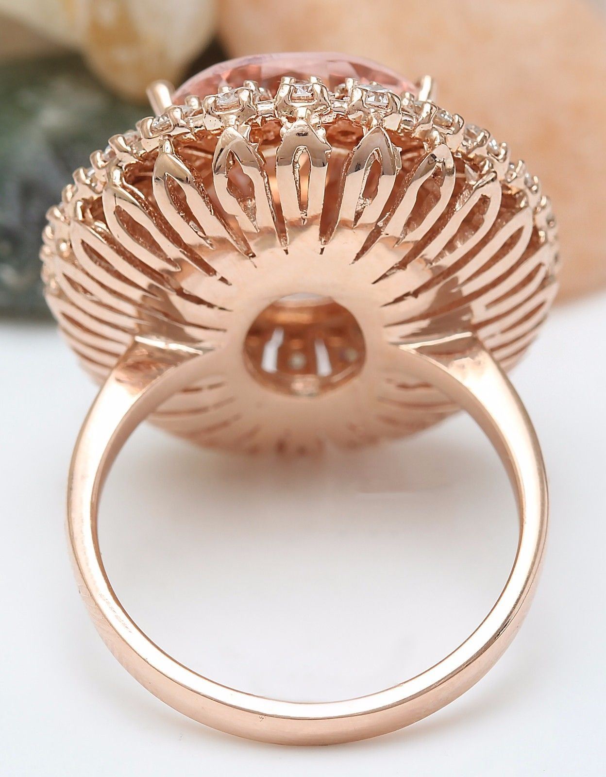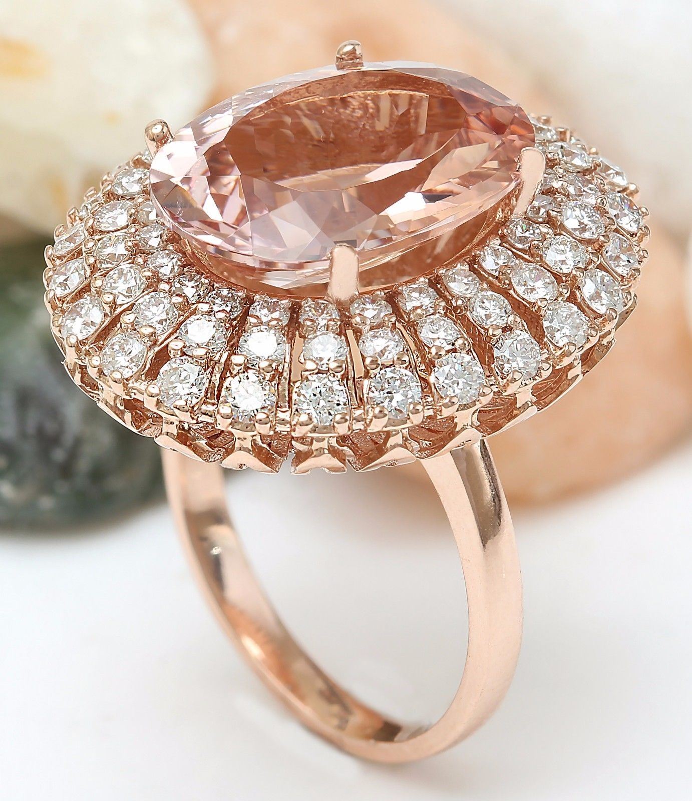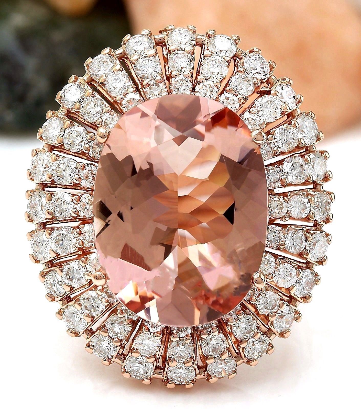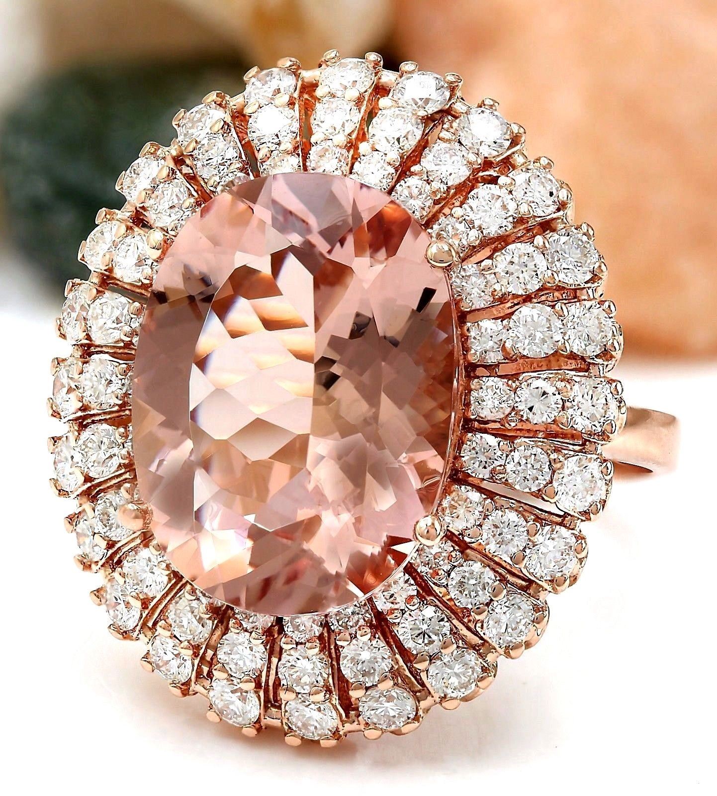 12.05 Carat Natural Morganite 14K Solid Rose Gold Diamond Ring