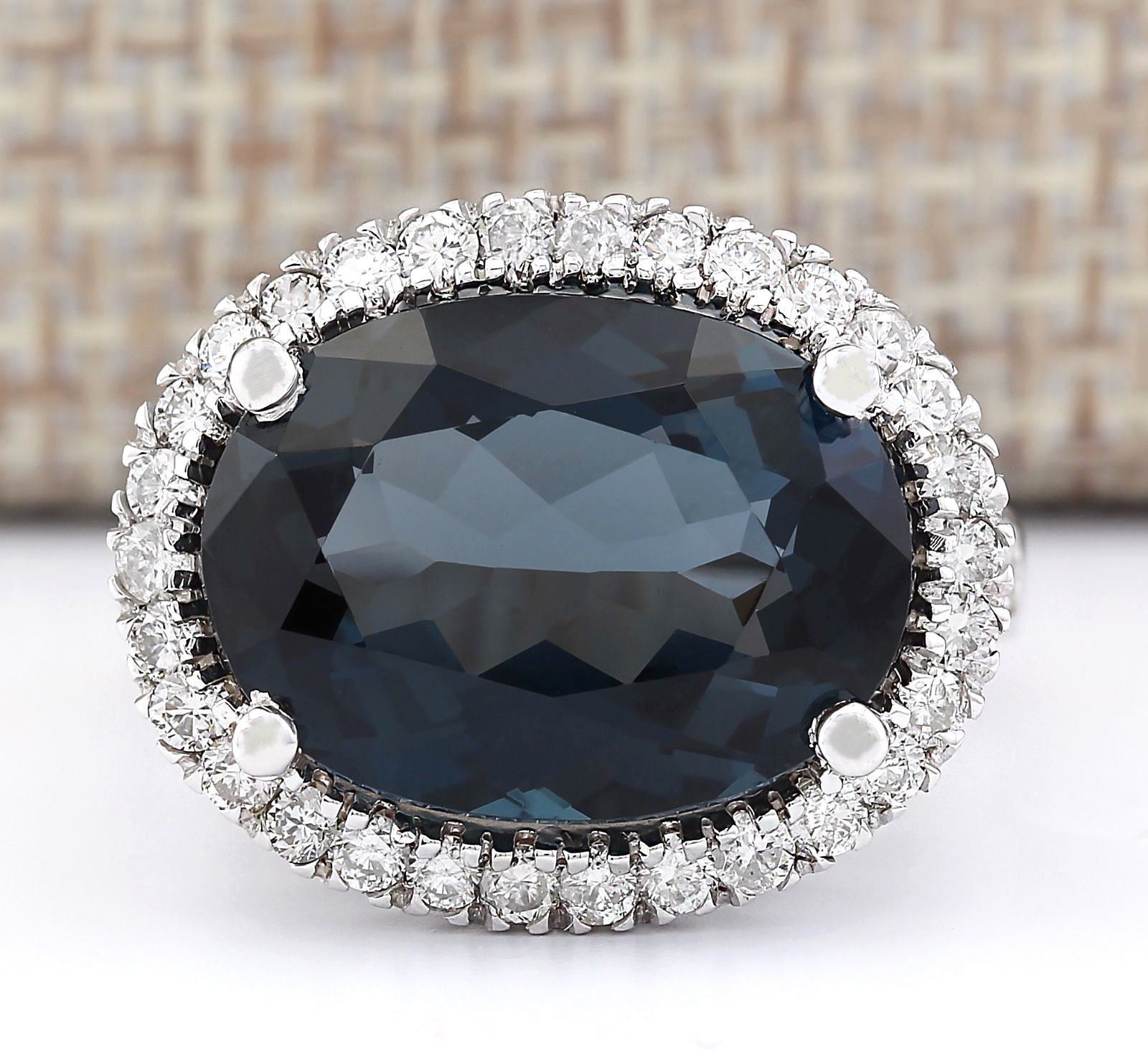 12.08 CTW Natural London Blue Topaz And Diamond Ring In18K Solid White Gold