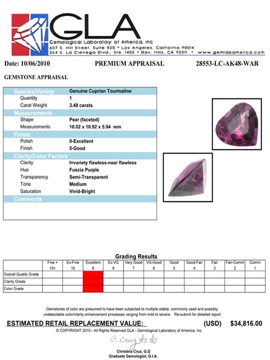 In the event that an item is listed as having an "Appraisal Estimate", this represents WAR's in-house estimate of what the item would appraise for at Gem Labs of America (GLA), Beverly Hills, CA. Actual appraisal of the item at GLA is the responsibility of the Bidder, however WAR may assist, at its discretion, in related logistics. WAR does provide the following guaranty (the "WAR 5% Loose Gem Guaranty") relative to Appraisal Estimate values of LOOSE GEMS: In the event that the GLA appraised value is not such an amount that the Bidder's winning bid is five percent (5%) or less of the GLA appraised value, then WAR, in it's discretion, will either refund such amount of the Bidder's winning bid and related charges so that the winning bid equals five percent (5%) of the GLA appraised value, or, instead issue a full refund on the item and reimburse the Bidder for the GLA appraisal fees. The Bidder may also opt to retain the item, in which case the WAR 5% Gem Guaranty shall not apply relative to the particular item.