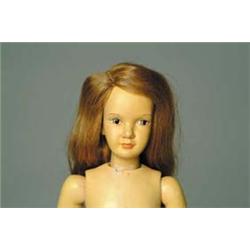 Lot 409: 12-1/2" GIRL BY DEWEES COCHRAN. She has nice facial detail with long golden brown hair. CONDITION: She is missing her clothing, her body has some unevenness to finish, small damage at neck socket, and her fingers have been repaired. 1-1234 CL143