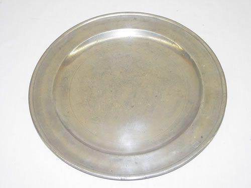 12 1/4" EARLY AMERICAN PEWTER CHARGER-MARKED S.G. BOSTON (SAMUEL GREEN) - WEAR, SCRATCHES & IMPERFECTIONS