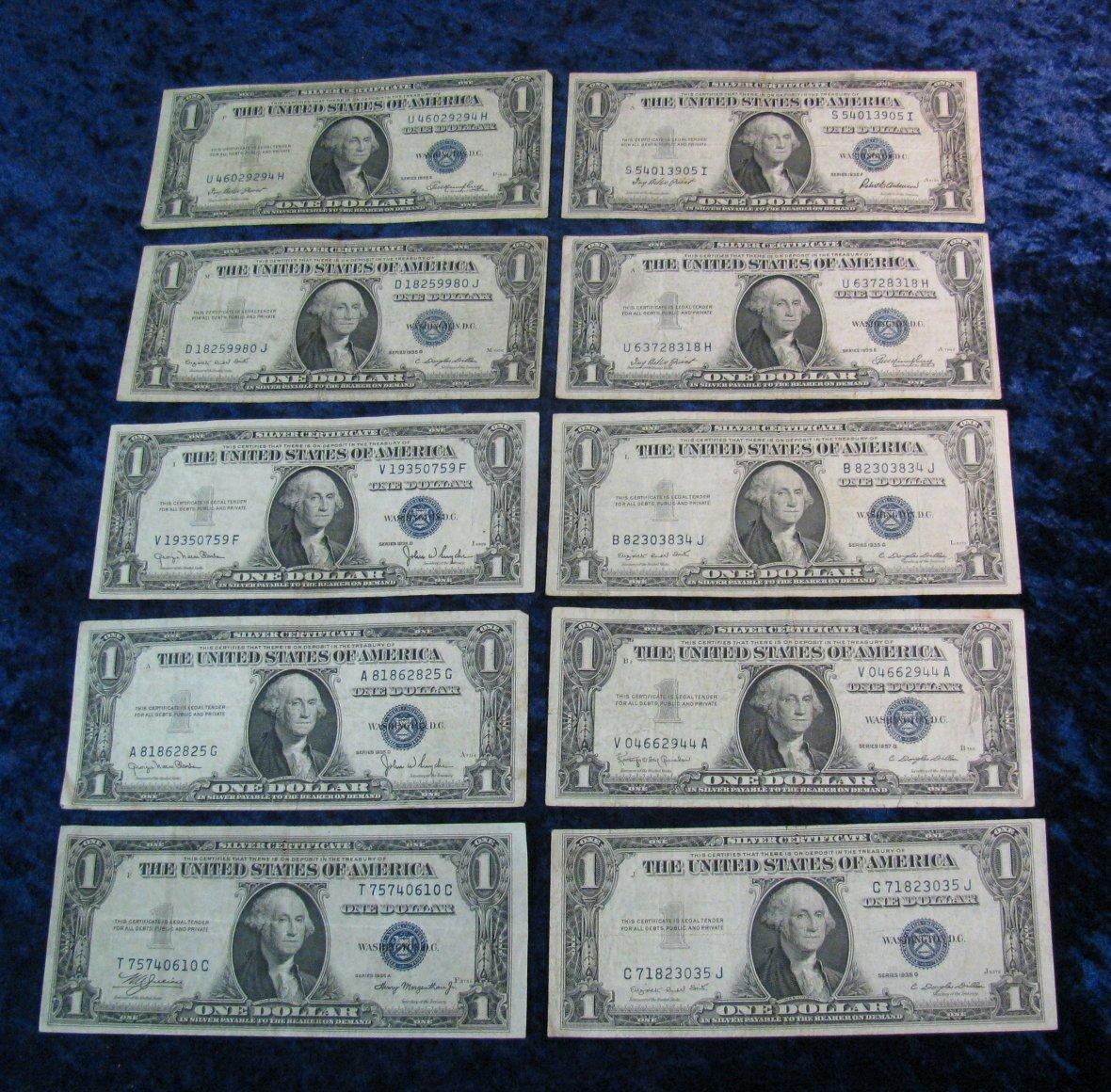 12 (10) Series 1935-57 Mixed $1 Silver Certificates.