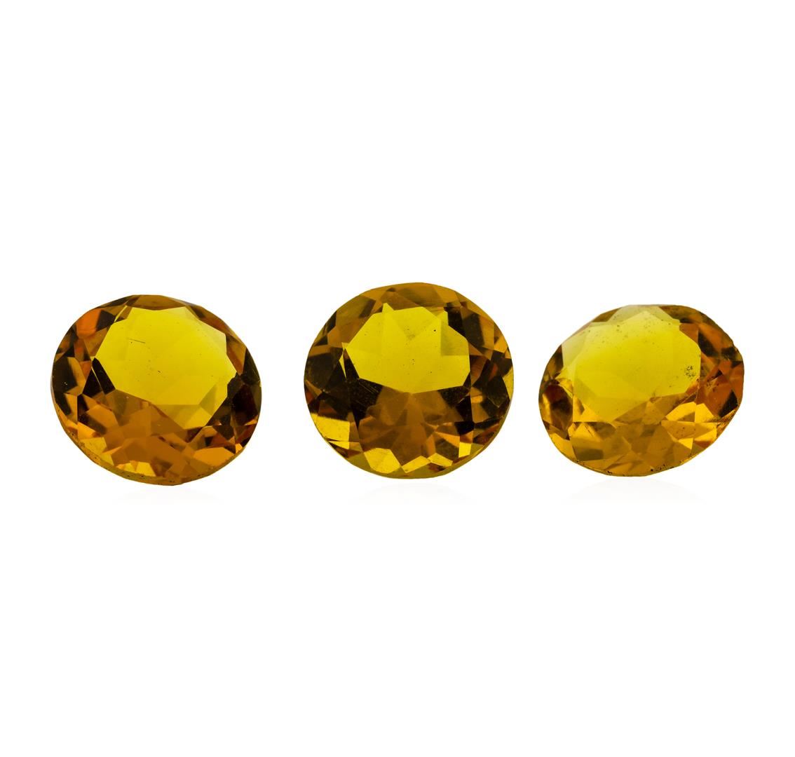 One natural round cut citrine quartz parcel of three with an exact weight of 12.10ctw., clarity is eye clean, yellowish orange, medium dark. Gemological Appraisals Services estimates the retail value at $484 GAS Appraised.