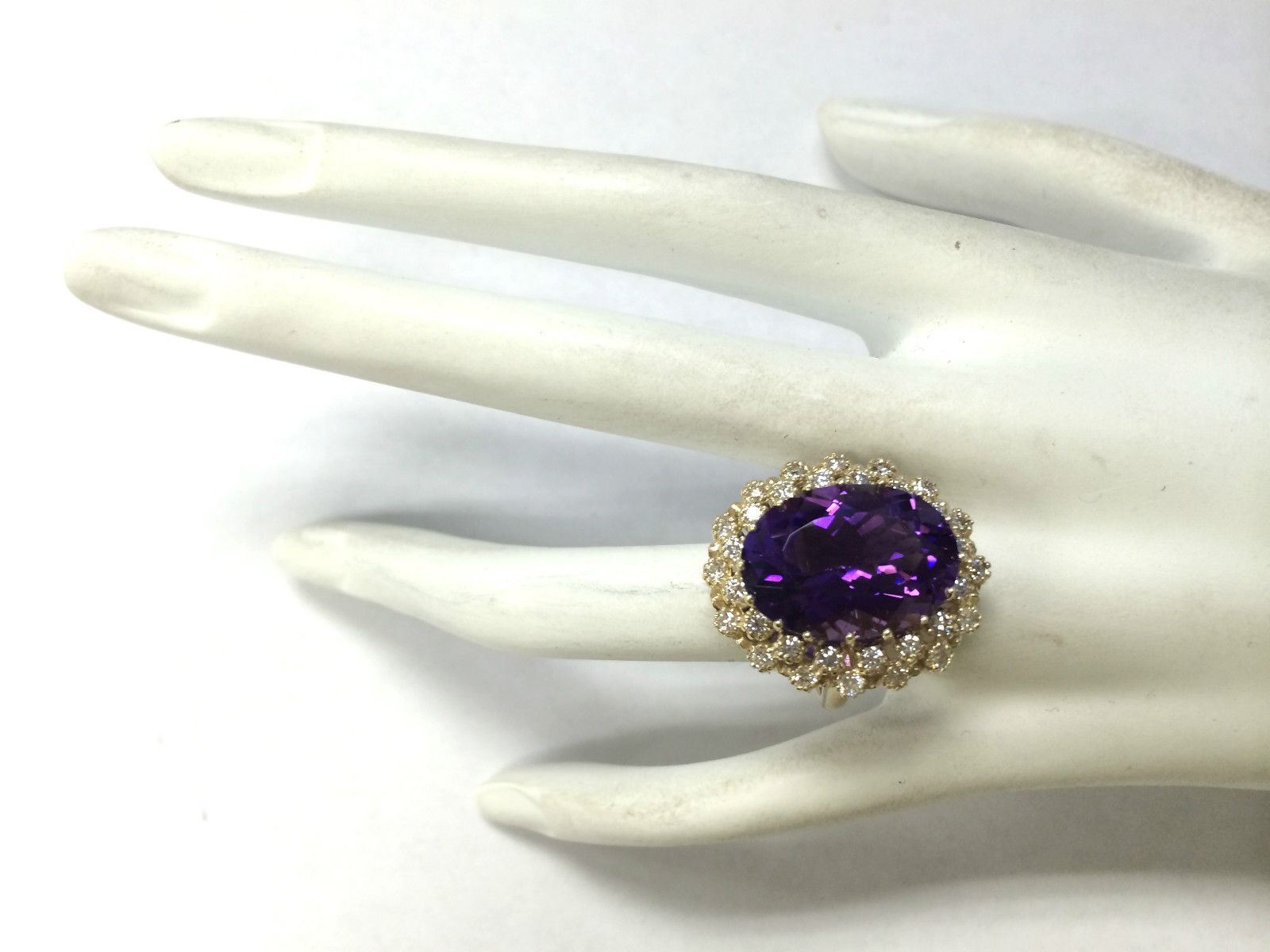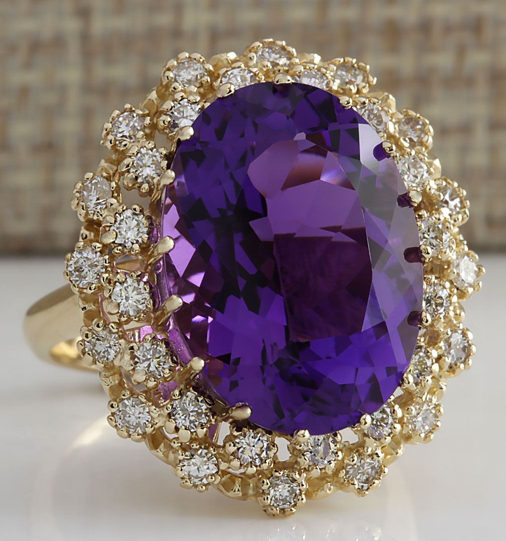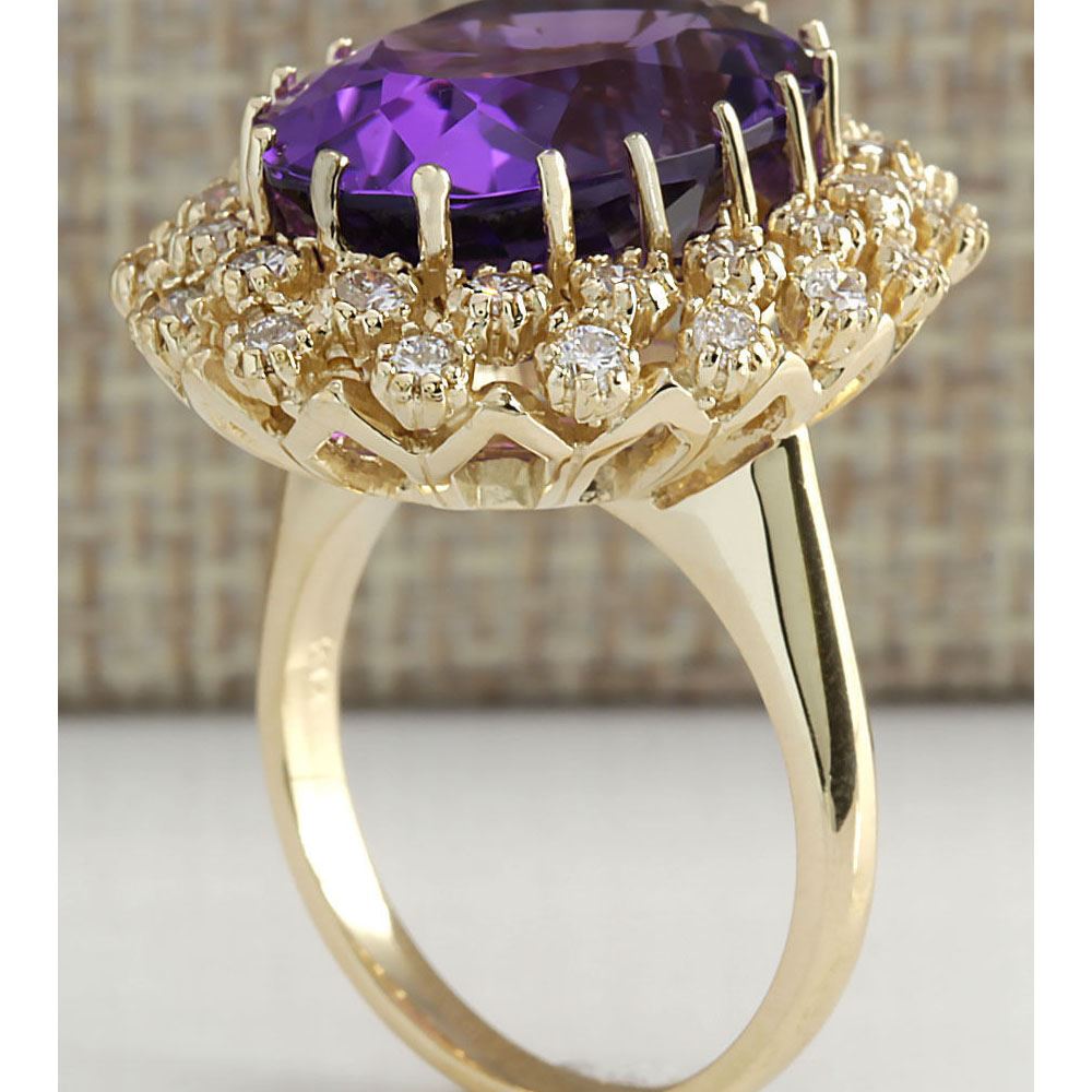12.11 CTW Natural Amethyst And Diamond Ring In 14K Solid Yellow Gold