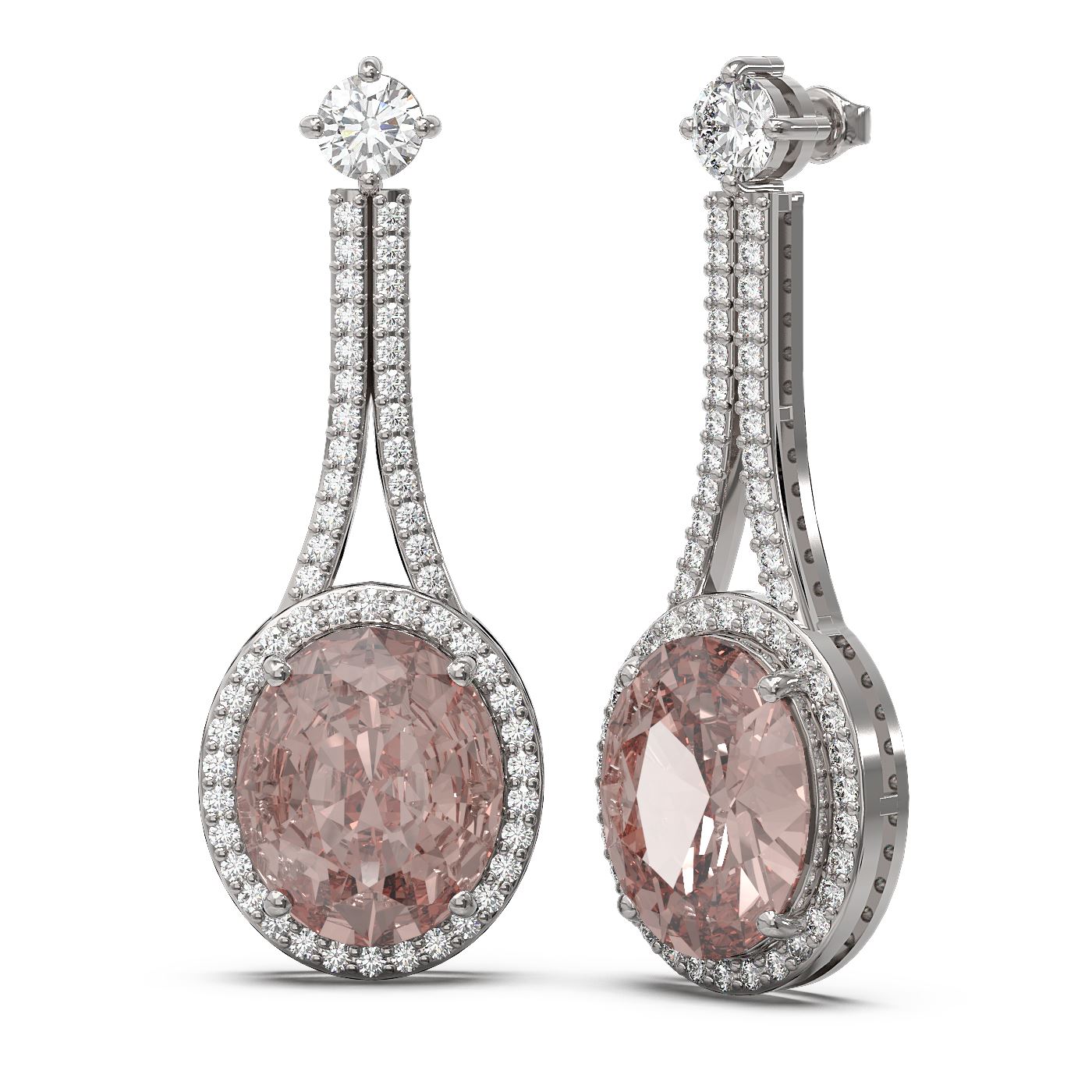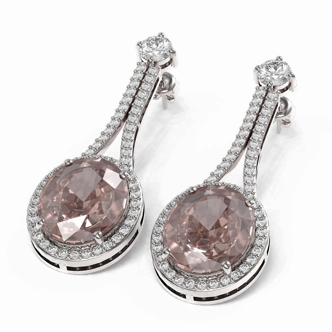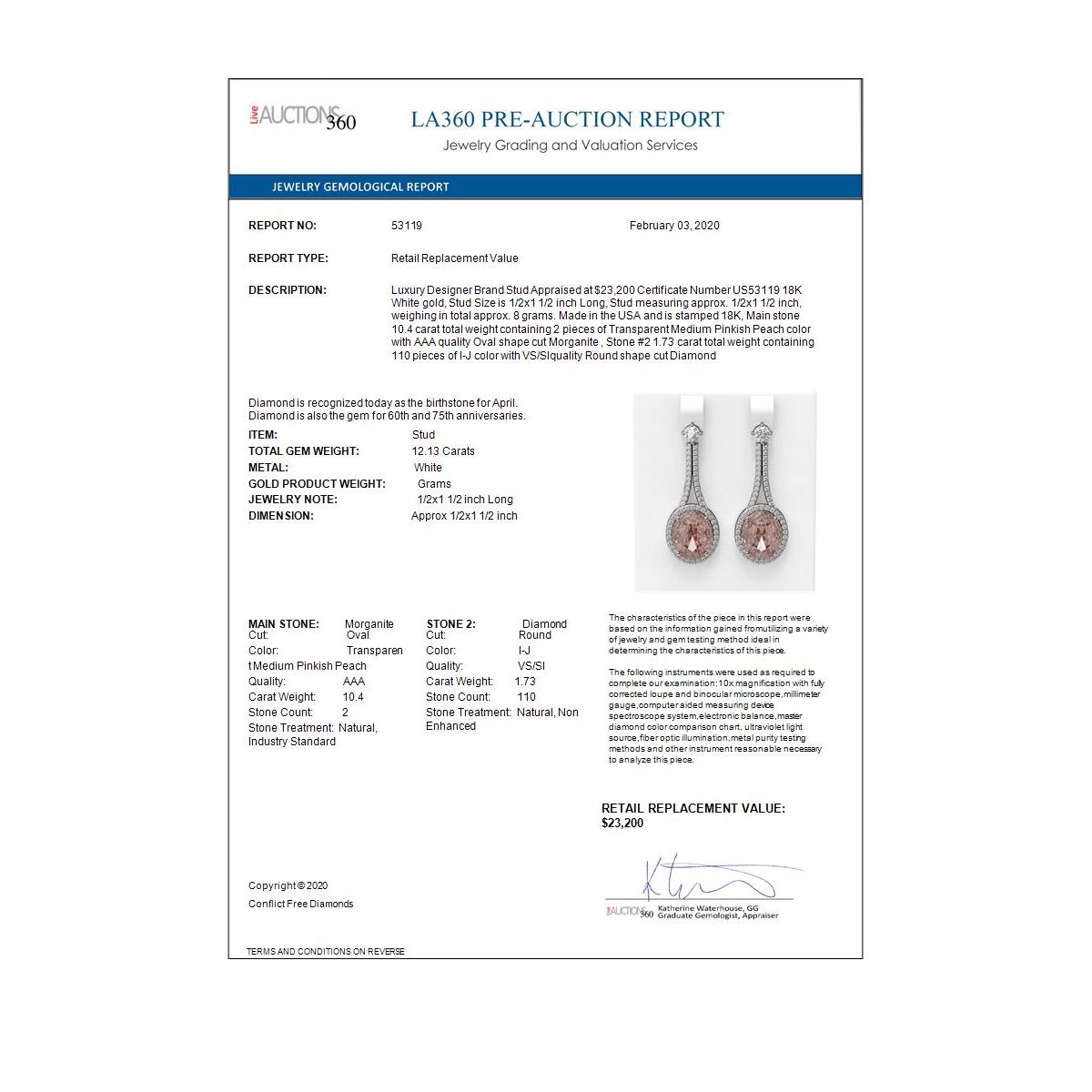REF-527X3A - SKU: 53119 ---- 12.13 ctw Morganite & Diamond Earrings 18K White Gold