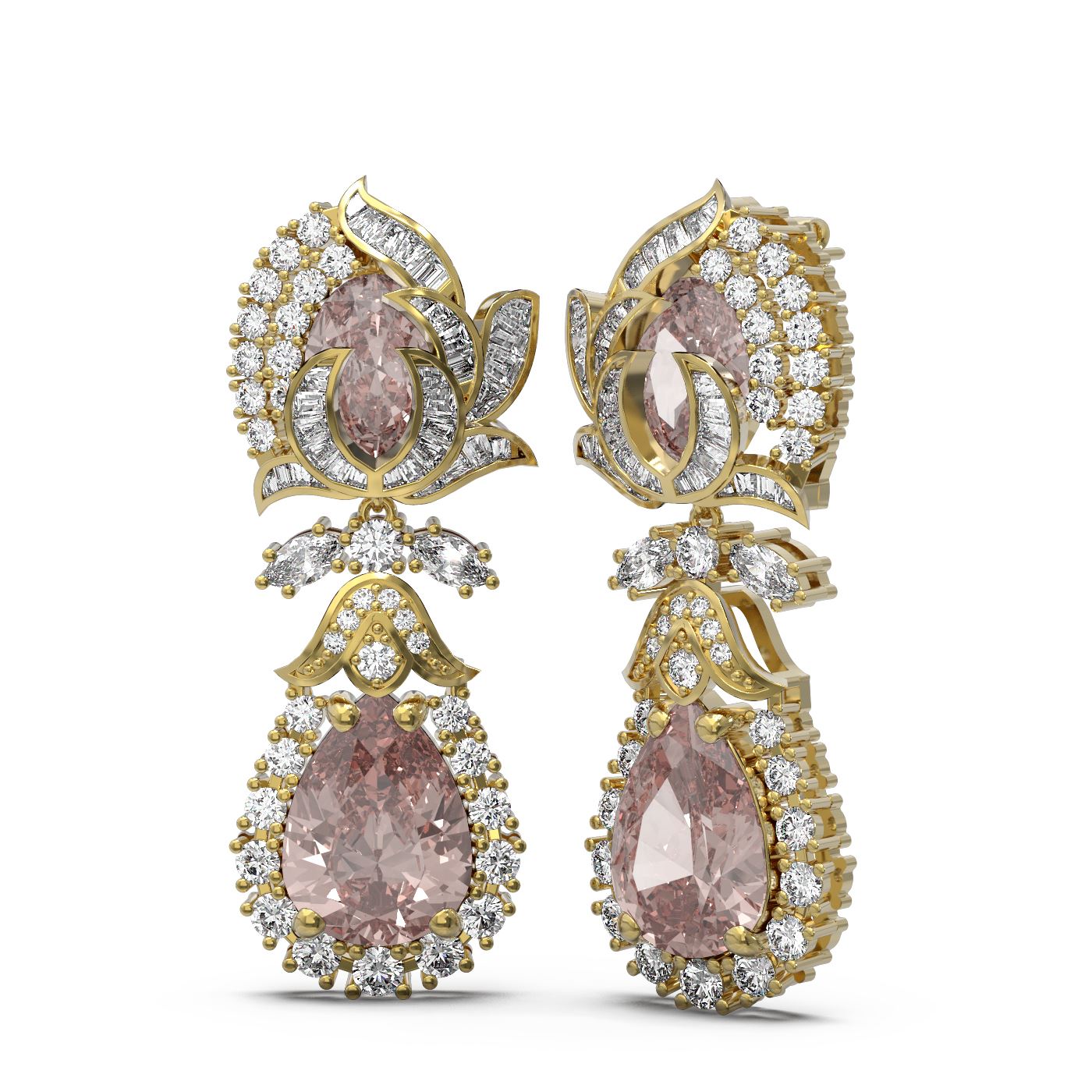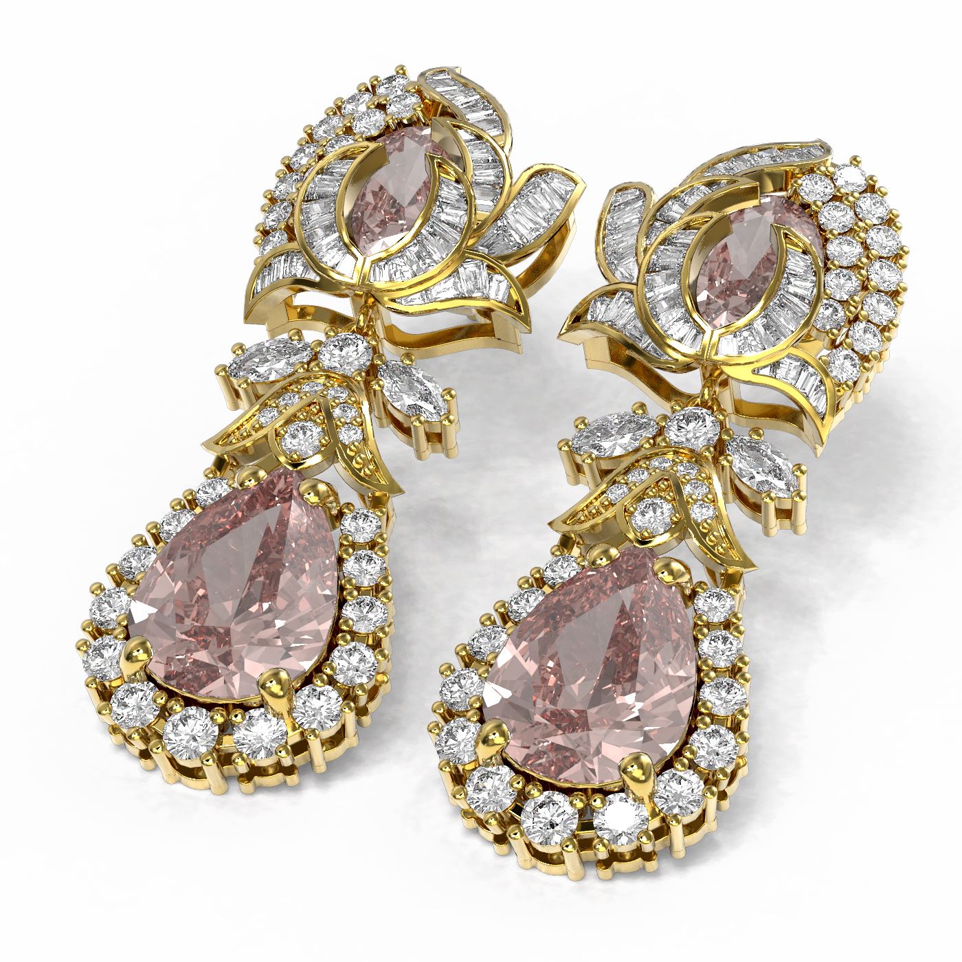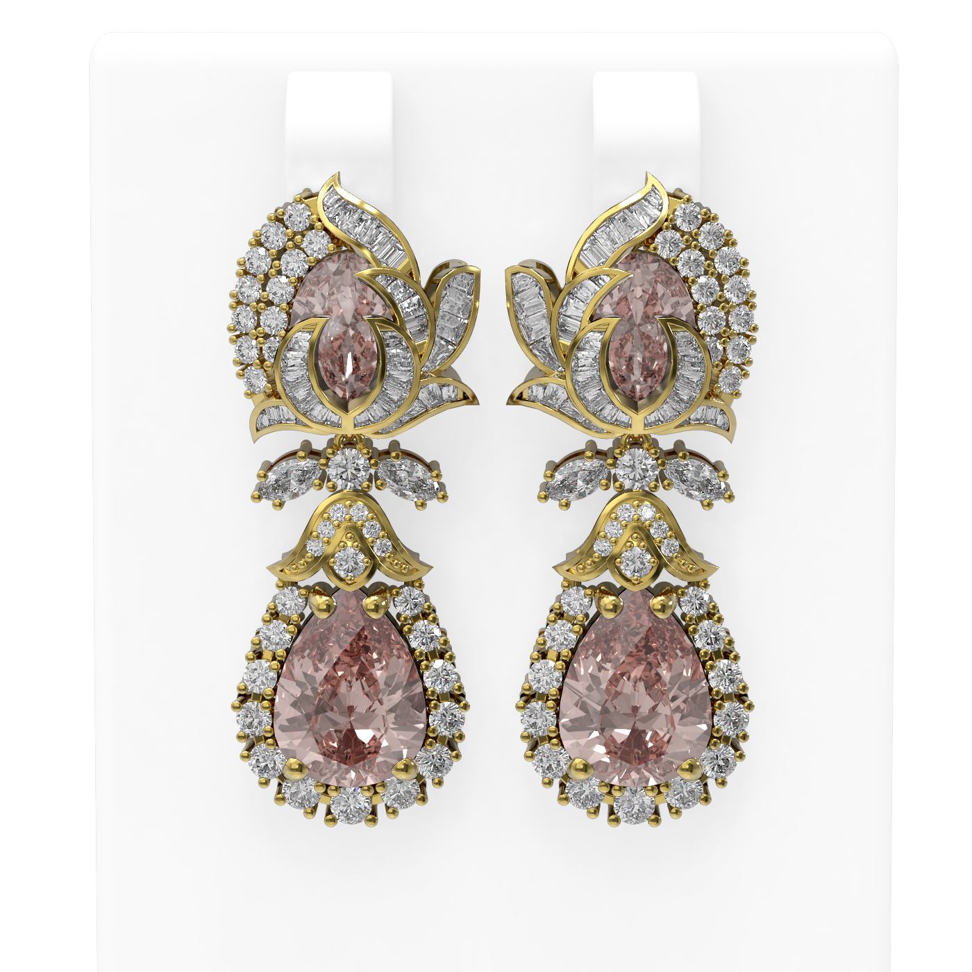 REF-647W3H - SKU: 55318 ---- 12.13 ctw Morganite & Diamond Earrings 18K Yellow Gold